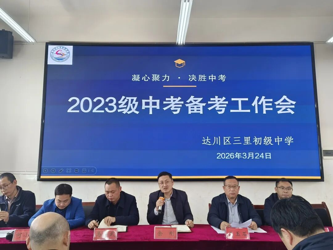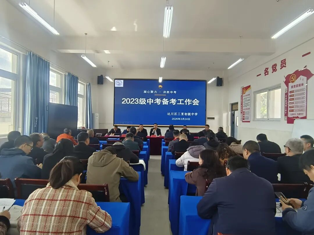 风好正是扬帆时,策马扬鞭再奋蹄。此次中考备考专题会议的顺利召开,进一步统一了思想、明确了任务、压实了责任、凝聚了共识,为达川区三里初级中学 2026 年中考备考工作奠定了坚实基础。与会教师纷纷表示,将以此次会议为新起点,牢记嘱托、不负使命,以更加饱满的热情、更加务实的作风、更加有力的举措,凝心聚力、真抓实干、精准施策、攻坚克难,全身心投入到中考备考各项工作中,用心用情守护每一位学子的成长梦想,奋力实现 2026 年中考提质增效、再创佳绩,向学校、家长和社会交上一份满意的答卷。