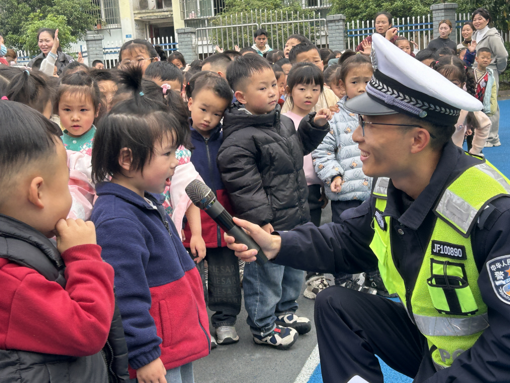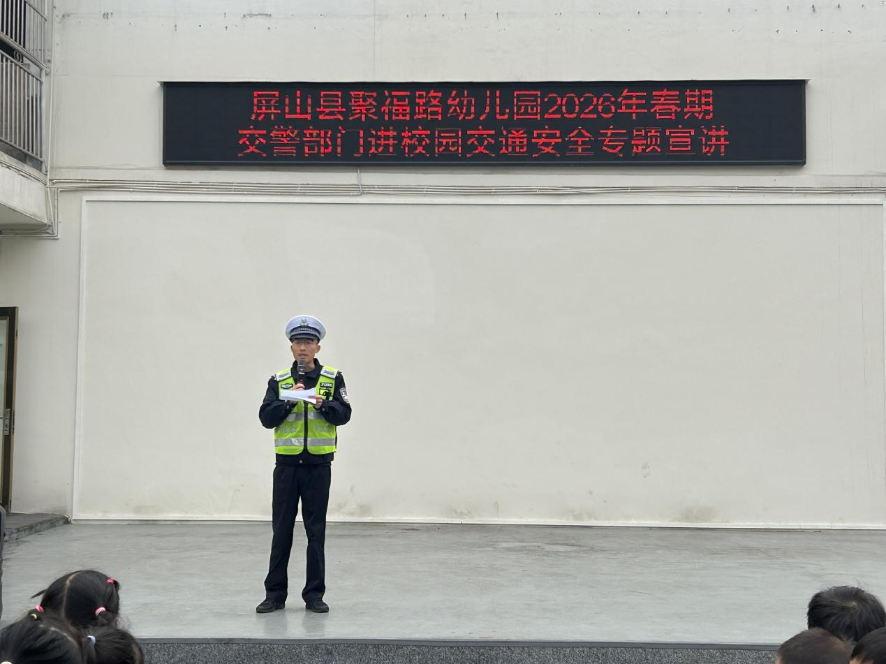 为进一步强化全园师幼交通安全意识,普及交通安全常识,有效预防和减少涉幼交通安全事故,切实筑牢校园安全防线,3月26日上午10:30,屏山县交通管理大队祝警官一行到屏山县聚福路幼儿园为全体师幼开展交通安全专题宣讲活动。