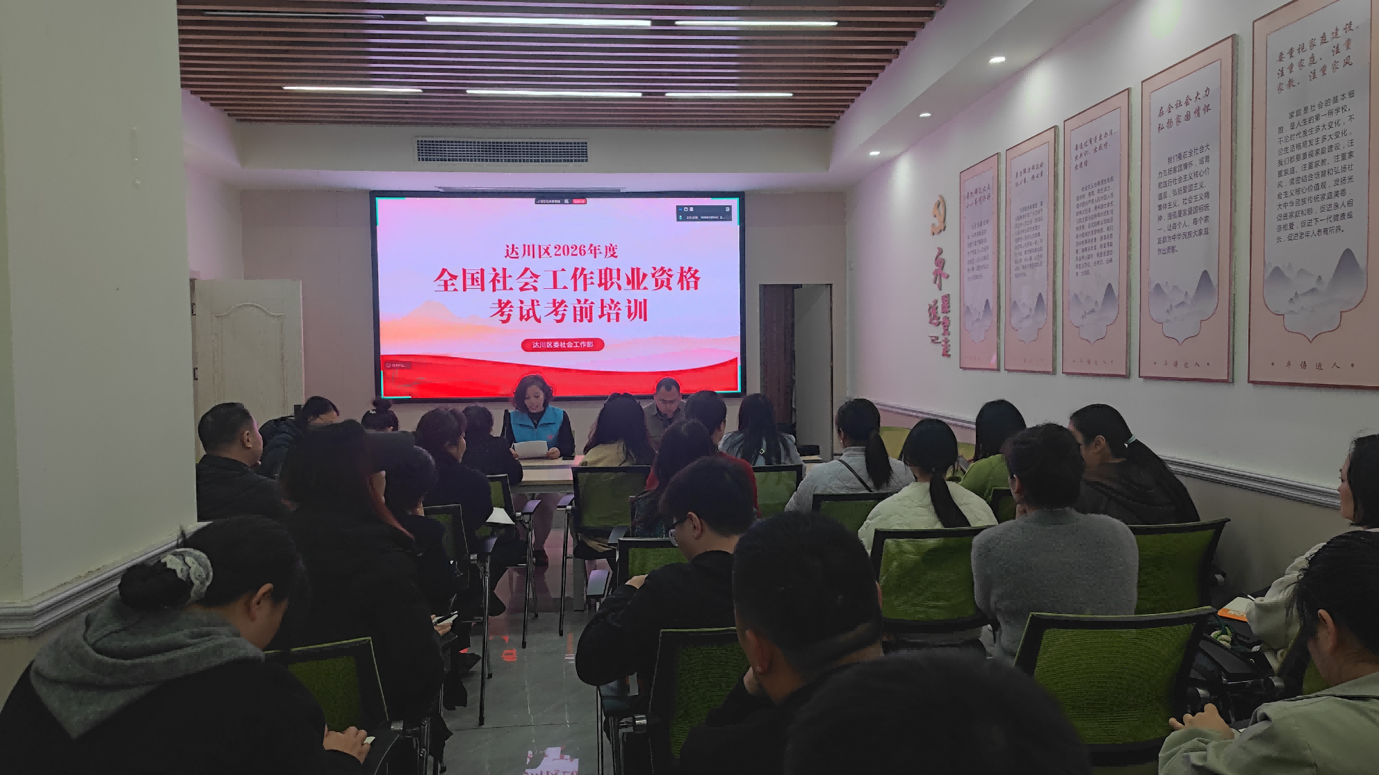 为深入贯彻落实区委关于加强社区工作者队伍建设的部署,进一步提升辖区社会工作专业化、职业化水平,近期,达川区翠屏街道紧盯2026年全国社会工作者职业资格考试的备考窗口期,精心组织开展了社工师证考前培训。通过摸底对接需求、引入优质师资、精准谈心答疑,切实提升社区工作者的理论素养和应试能力。
