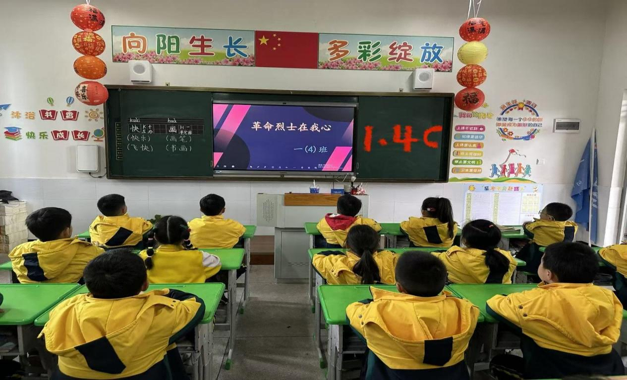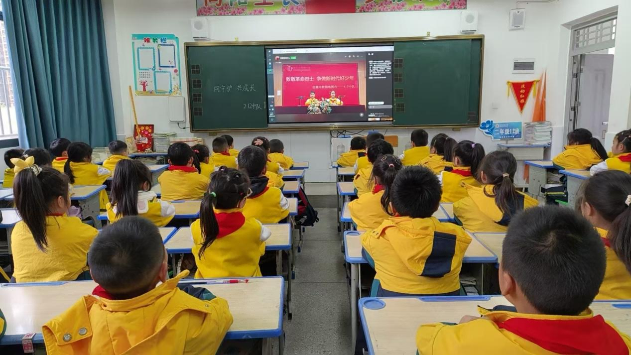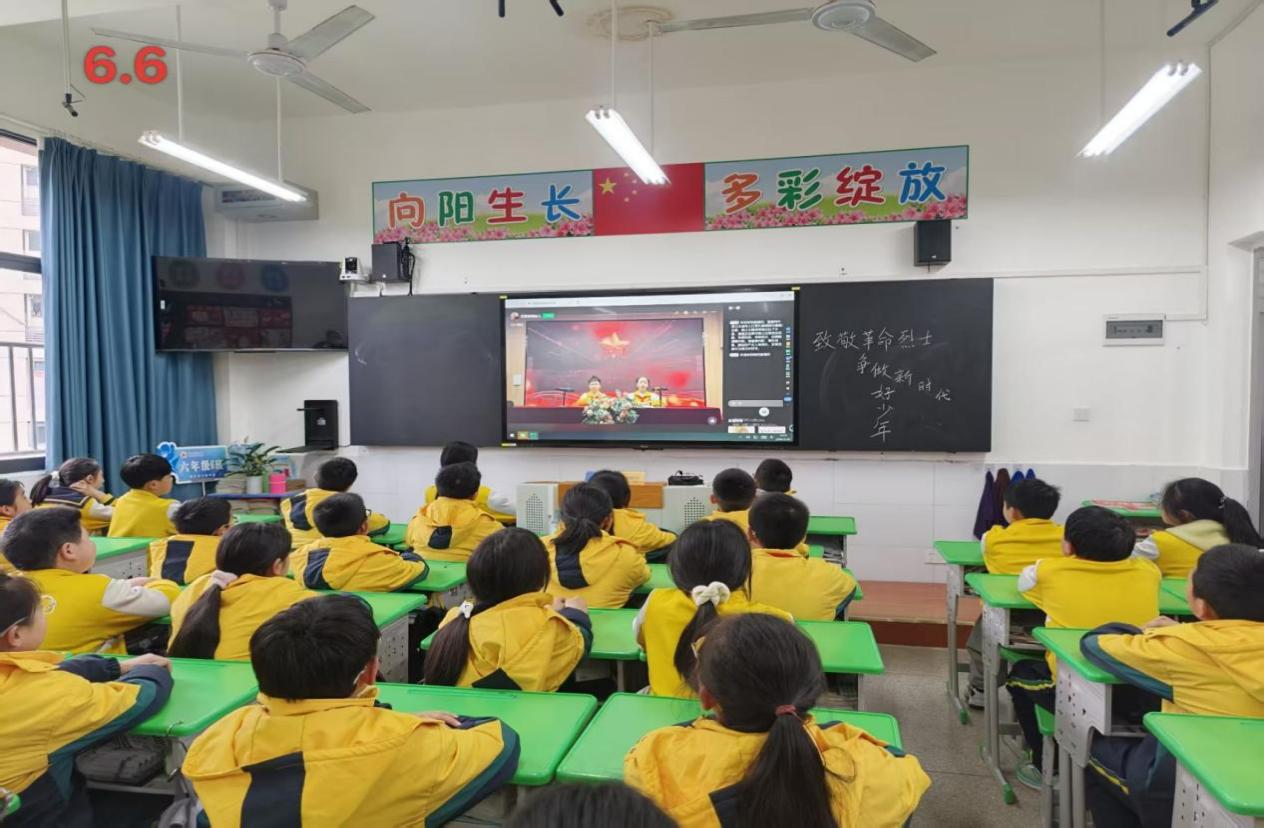 班会课上,各班级依托“红领巾校园电视台”同步直播,围绕“致敬革命烈士 争做新时代好少年”主题,通过丰富多样的形式开展学习。低年级班主任以“革命烈士在我心”为切入点,用生动的语言讲述少年英雄王二小等革命先烈的故事,借助图文并茂的课件,让孩子们直观感受英雄们的勇敢与奉献;中高年级则通过观看红色事迹短片、分享英雄故事等形式,带领学生重温烽火岁月,感悟革命先辈们为民族解放事业舍生取义的崇高精神。