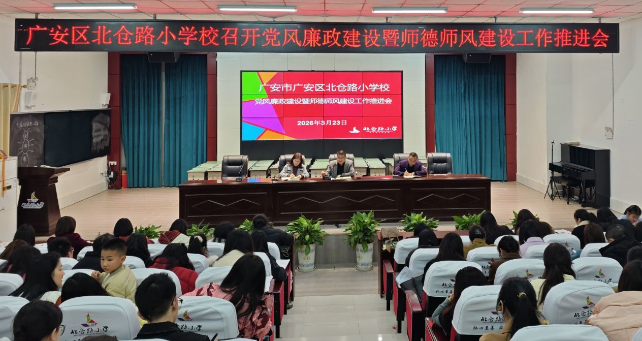 此次党风廉政建设工作推进会的召开,为广安市广安区北仓路小学校后续廉政建设工作指明了方向、明确了任务。下一步,学校将以此次会议为契机,持续深化党风廉政建设工作,把廉政要求融入学校教育教学、管理服务全过程,不断夯实廉洁校园建设根基,以清正廉洁的师风、淳厚向上的校风,助力每一位学生阳光、健康成长,奋力推动学校教育事业高质量发展。(李国庆 钱成莲)