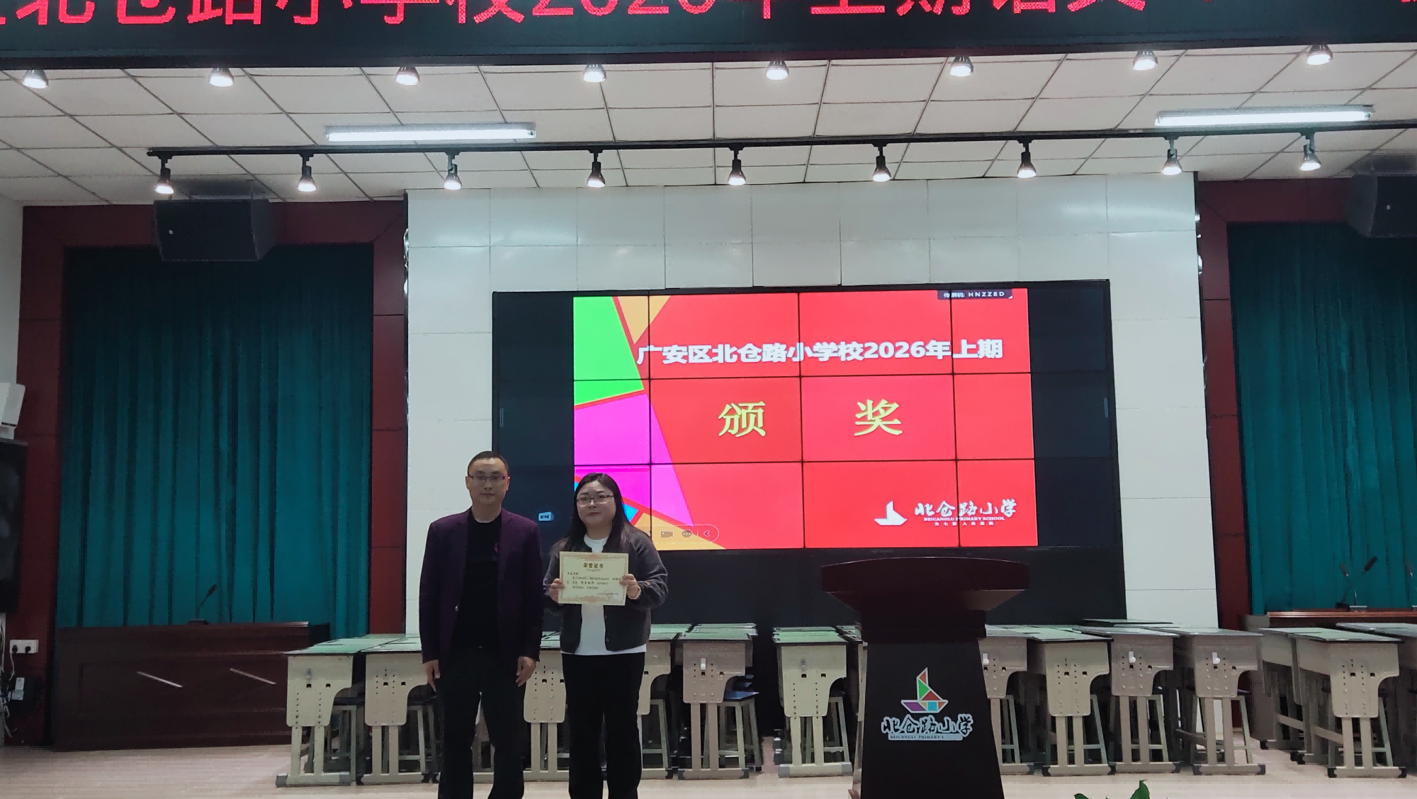 最后,北仓路小学校陈建勇副书记高度评价了本次活动的组织与开展,认为活动主题明确、流程清晰、成效显著,同时针对教学环节的节奏把控、学生思维的深度拓展以及朗读指导等方面,提出了中肯的改进建议,并为罗燕老师颁奖。