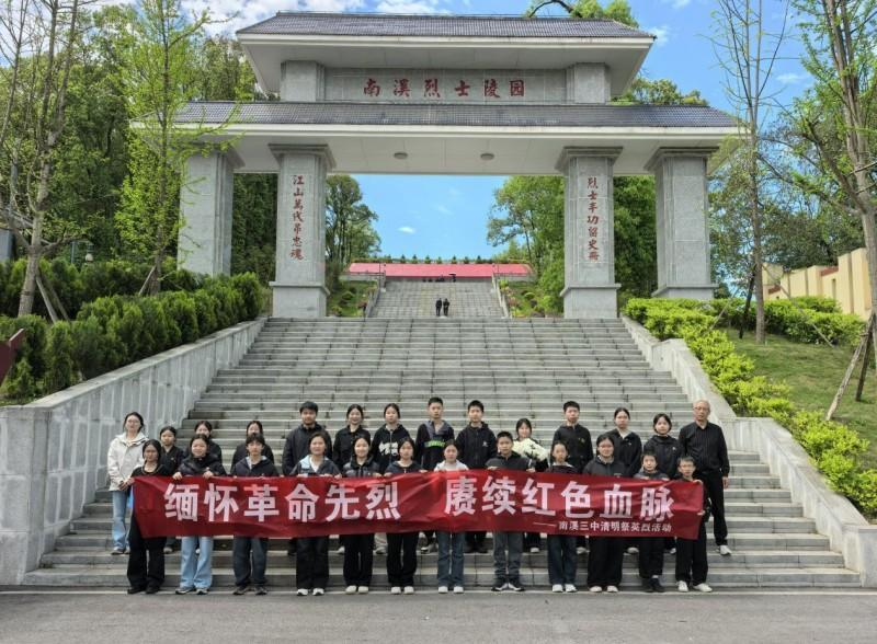 清明时节雨纷纷,哀思缕缕祭忠魂。为深切缅怀革命先烈丰功伟绩,传承红色革命精神,厚植青少年爱国主义情怀,3月31日,南溪三中团委组织团员代表前往南溪区烈士陵园,开展“缅怀革命先烈·传承红色基因”主题祭扫活动。