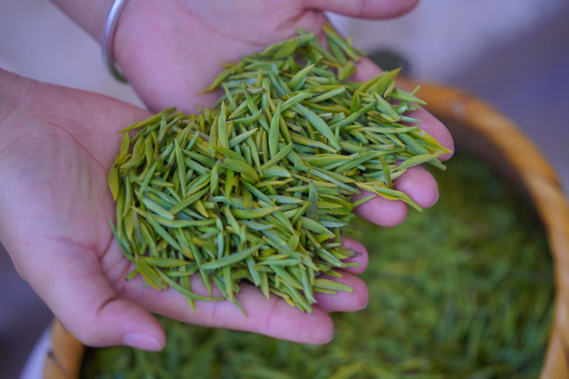 清晨8点,孩子们背着茶篓踏上乡间小路,一路欢声笑语。茶园里,技术人员手捧茶芽耐心讲解:“采茶要用指尖轻轻提,要采‘一捏一提’。”