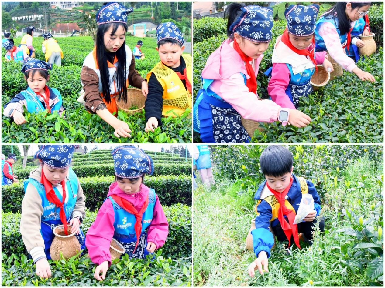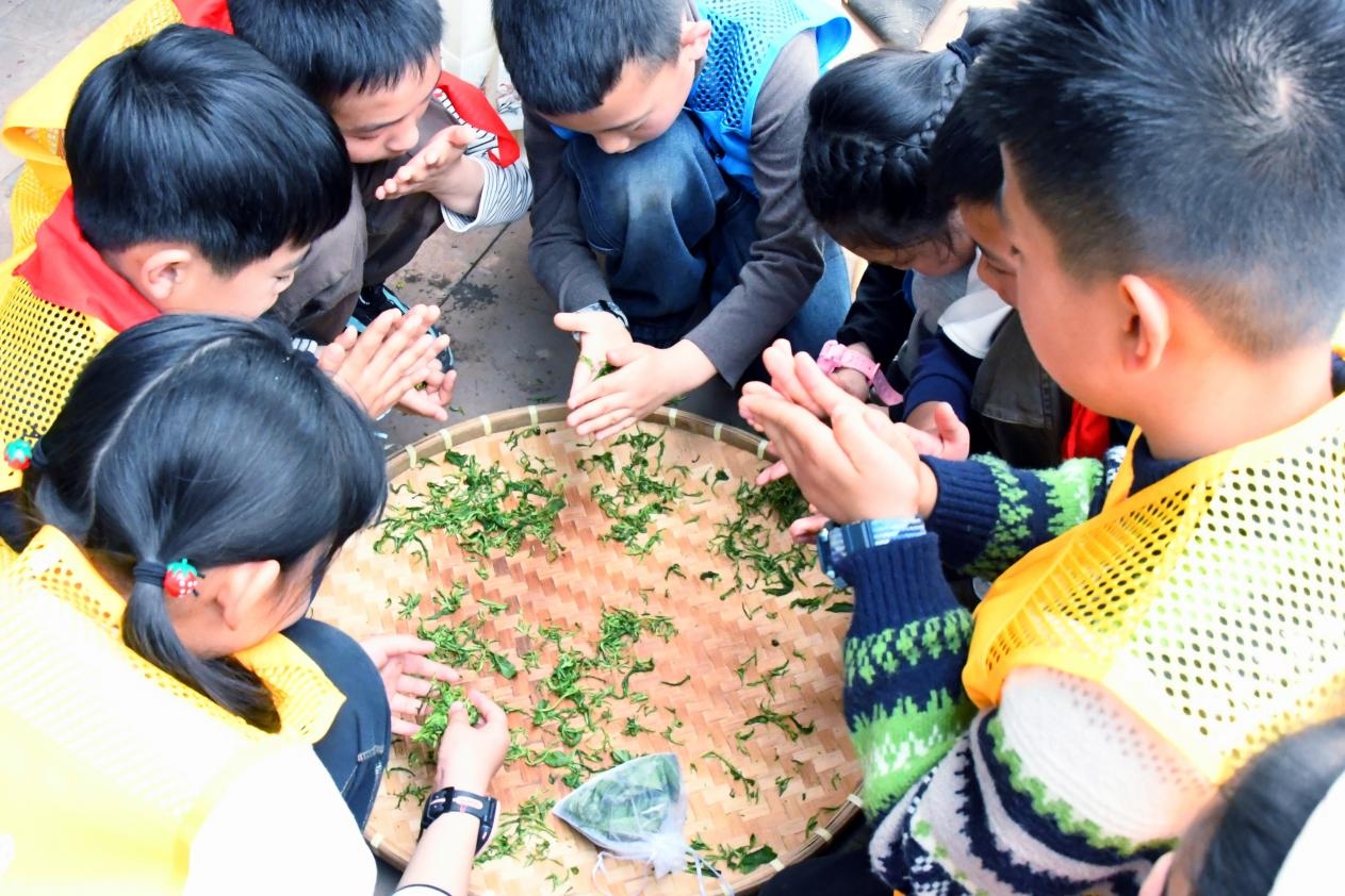 活动伊始,专业茶艺讲师带领少先队员们了解茶叶种类、生长习性与当地茶文化。随后,大家拴起围裙、戴上头巾、背上采茶背篓,在老师带领下上茶山,以一芽一叶为标准采茶并比赛,尽情体验劳动乐趣。接着,众人观看手工茶制作、茶艺表演,学习品茶礼仪、参与茶文化交流游戏。