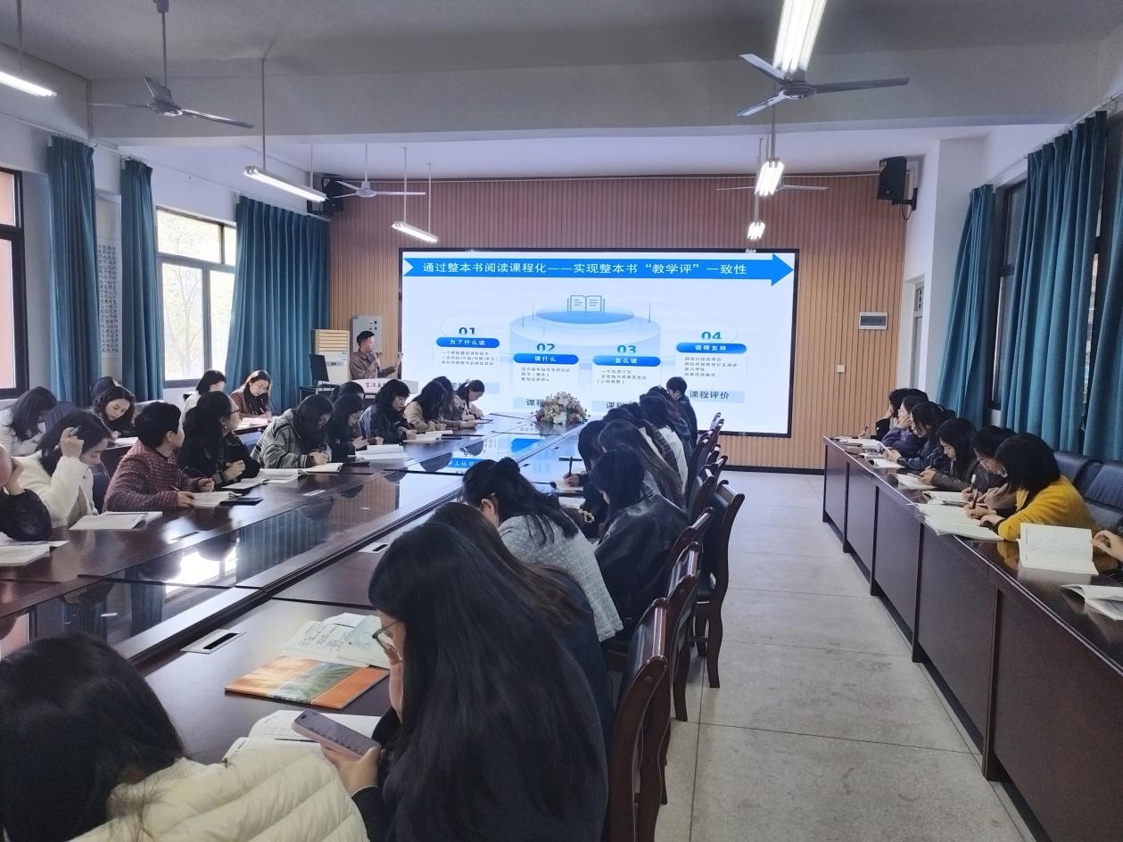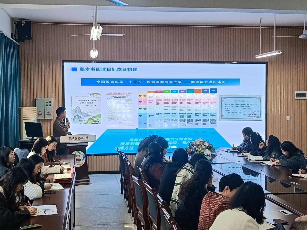 活动伊始,“校校书香”项目的敬涛老师围绕整本书阅读教学进行专题分享。敬涛老师结合小学生的认知规律与年龄特点,提出以共读模式落实整本书阅读教学的有效路径,精心筛选了适配小学各学段的经典阅读书目,为全校各年级搭建起系统化、阶梯化的整本书阅读体系。此次分享为语文教师开展整本书阅读教学指明了方向,助力学生养成良好阅读习惯,筑牢语文阅读教学的根基,让书香浸润校园每一个角落。