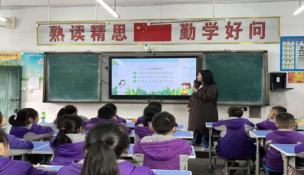 针对春季传染病的预防,活动给出了科学、具体的“预防措施”。从日常卫生习惯养成入手,强调勤洗手、勤通风、勤消毒的重要性;倡导师生们根据天气变化及时增减衣物,坚持规律作息、加强体育锻炼,提升自身免疫力;同时提醒在传染病高发期,尽量减少前往人群密集场所,必要时规范佩戴口罩,做好个人防护。此外,学校还结合校园实际,明确了班级日常健康监测、环境消杀、疫情应急处置等校园防控要求,构建起家校共育、全员参与的防护体系。