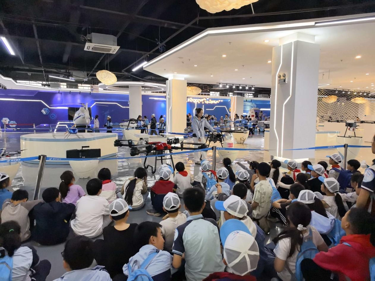 午后,队伍前往翼空智控航空基地。同学们认真聆听基地安全讲解,依次进馆参观航空科普展厅,学习航空发展史、飞行器原理等知识;部分同学参与了沉浸式飞行体验,亲身感受航空科技的魅力;户外飞行表演环节,精彩的特技飞行让同学们欢呼不已,无人机航拍为本次研学留下了珍贵的集体影像。科技实践环节点燃了同学们的探索热情,大家积极提问、认真体验,在实践中树立了科学梦想。