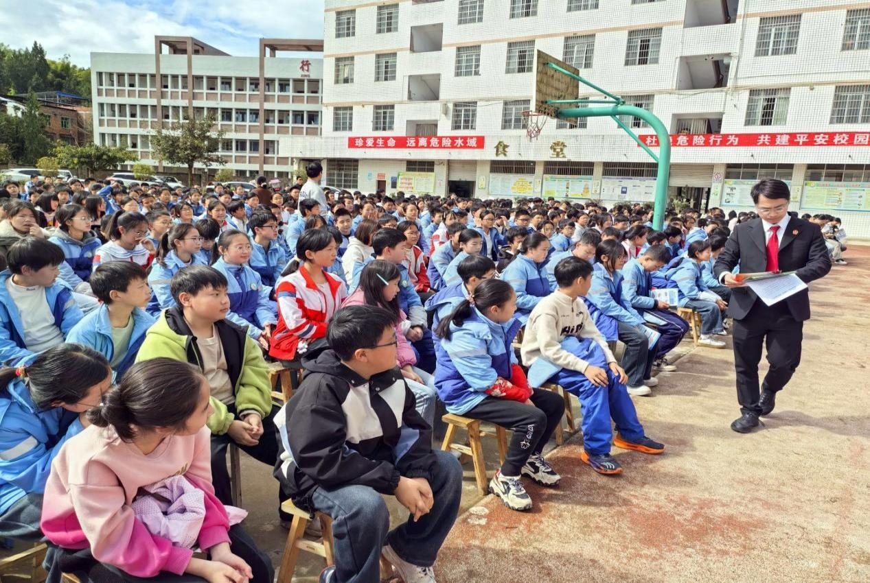 为进一步强化学生的法治与安全意识,学校特别邀请法治副校长周云飞走进校园,开展“知法于心 守法于行”法治教育专题讲座。讲座现场,法治副校长结合真实案例,用通俗易懂的语言,向全体学生讲解了未成年人保护、预防校园欺凌、反诈防骗等相关法律知识,引导学生树立正确的法治观念,学会用法律武器保护自己。同时,学校还组织开展了防溺水、防校园欺凌等专项安全教育宣讲,通过发放宣传手册、现场讲解等方式,让学生们在沉浸式学习中提升安全防范能力。