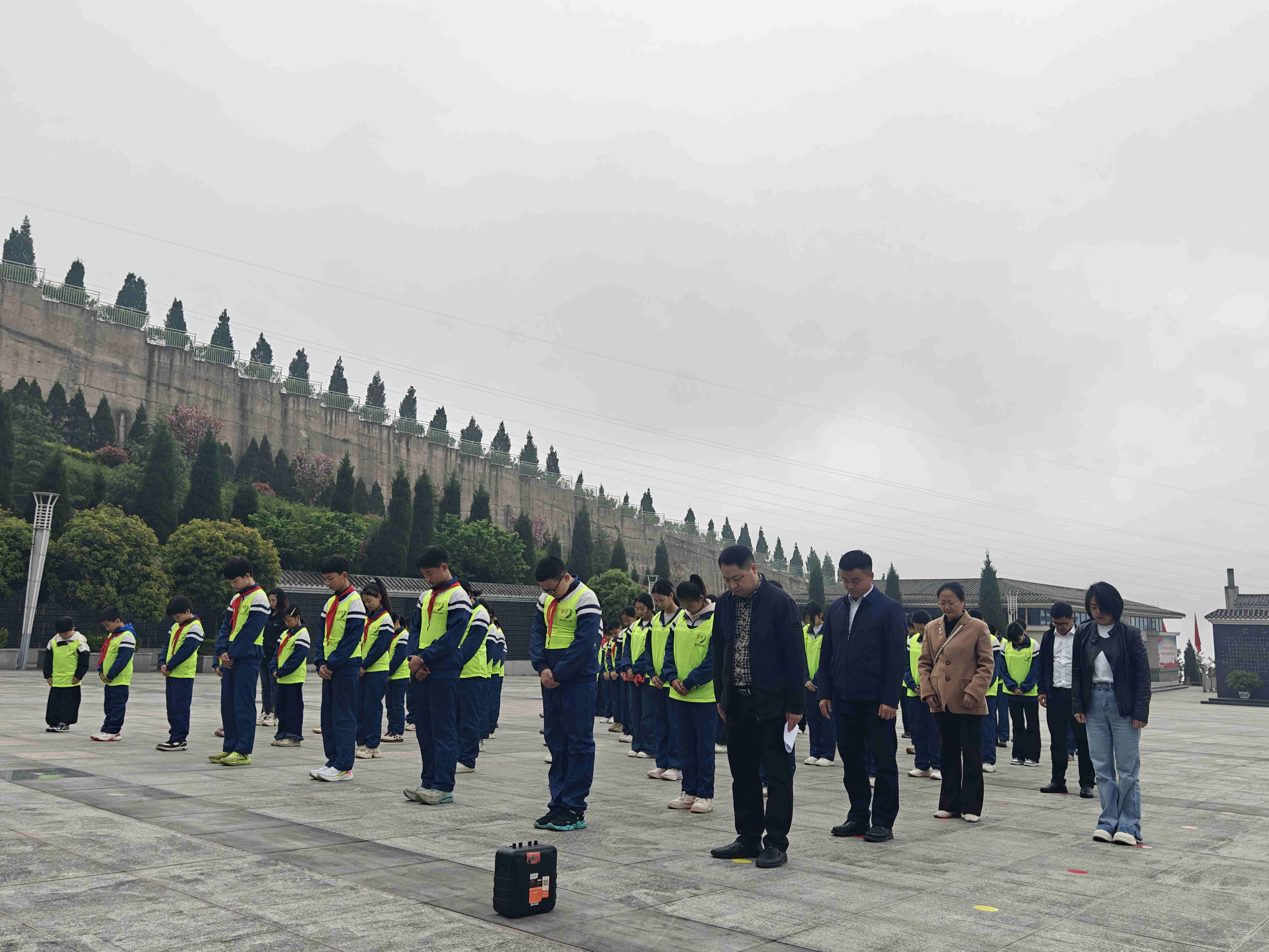 活动首站,师生们怀着崇敬之心,踏入庄严肃穆的烈士陵园。大家神情凝重,迈着缓缓步伐向革命烈士纪念碑敬献花篮,表达深切缅怀。默哀时刻师生们神情恭肃,英烈精神耀碧空,激励着师生们在新时代奋勇前行。