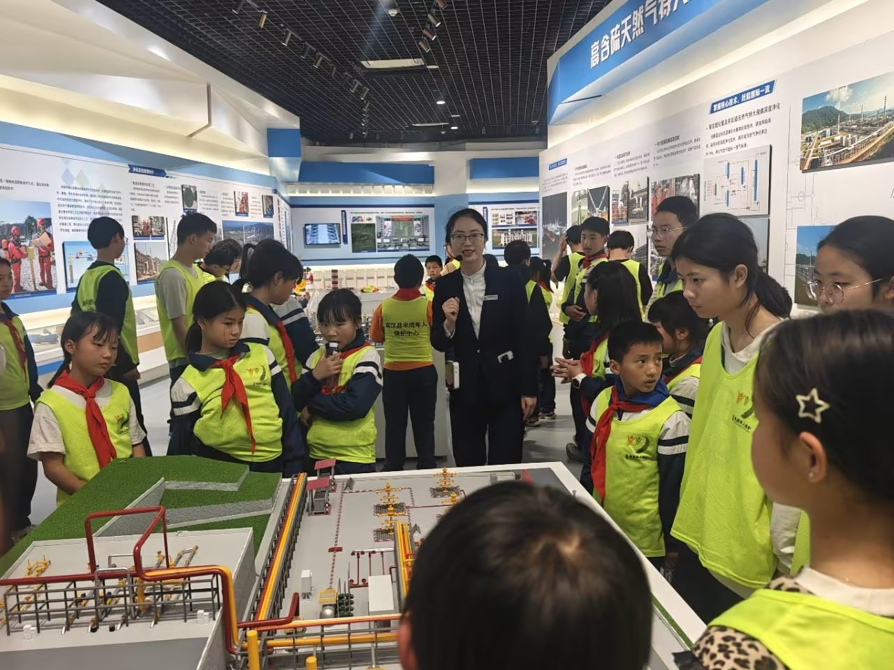 下午,同学们走进普光科技馆,开启了一场探索科技奥秘的奇妙旅程。从浩瀚宇宙到微观世界,从人工智能到新能源技术,每一项展示都点燃了他们探索科学的好奇之火。“纸上得来终觉浅”互动体验区里,同学们亲身感受科技的魅力,体验科技创新为生活带来的日新月异的变化。尤其是当他们深入了解微玻纤生产工艺与特性,目睹其在建筑、汽车、航空等领域广泛应用后,眼界大开,爱国情怀与民族自豪感油然而生。