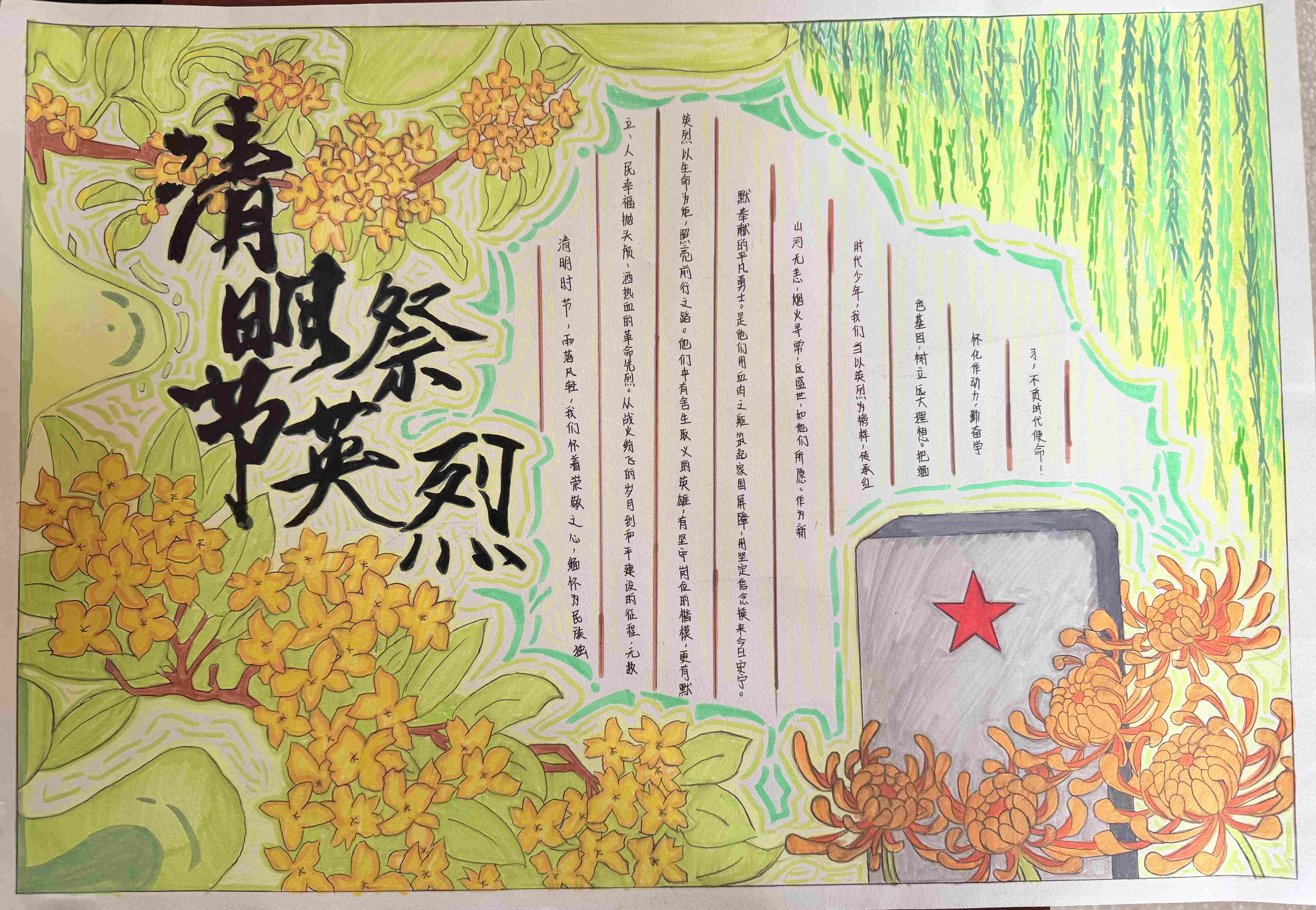 此次活动内容丰富、形式多样。各班级召开清明祭英烈主题班会,班主任带领学生回顾革命历史,讲述英烈故事,让学生深刻感悟先烈们为国家独立、民族解放舍生忘死的崇高精神。同时,各班积极开展主题手抄报创作活动,同学们用画笔勾勒英雄形象,书写英烈事迹,将对革命先烈的崇敬与哀思融入一幅幅作品中,营造出浓厚的缅怀氛围。