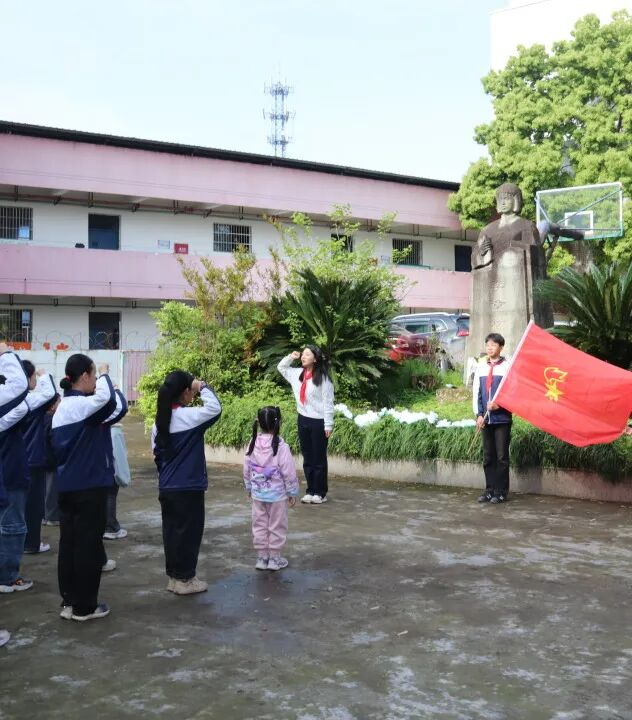 学校组织少先队员代表,在烈士塑像前举行庄重肃穆的祭奠仪式。全体队员整齐肃立、行队礼,齐声高唱国歌与中国少年先锋队队歌。学校副校长王兴高为同学们深情讲解李章材烈士的英勇事迹,少先队员代表缅怀先烈、抒发感悟,表达传承英烈精神的坚定决心。随后,全体师生依次敬献鲜花、行三鞠躬礼,重温入队誓词并庄严呼号,仪式最后有序瞻仰烈士塑像。整场祭奠庄重深沉,让深切哀思凝聚成奋进力量,激励广大少年儿童传承红色基因、赓续红色血脉,立志争做担当民族复兴大任的时代新人。