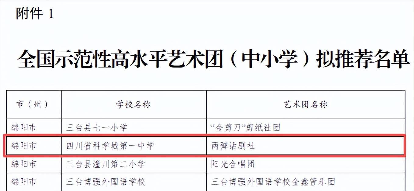 日前,四川省教育厅公布了创建全国示范性特色学校(美育类)拟推荐名单,于敏科技中学“两弹话剧社”入选全国示范性特色学校(美育类)“全国示范性高水平艺术团”名单。这是学校深耕红色美育、践行五育融合的重磅成果,于敏科技中学两弹话剧社也成为全省以科学家精神与红色戏剧为鲜明特色的标杆学生社团。