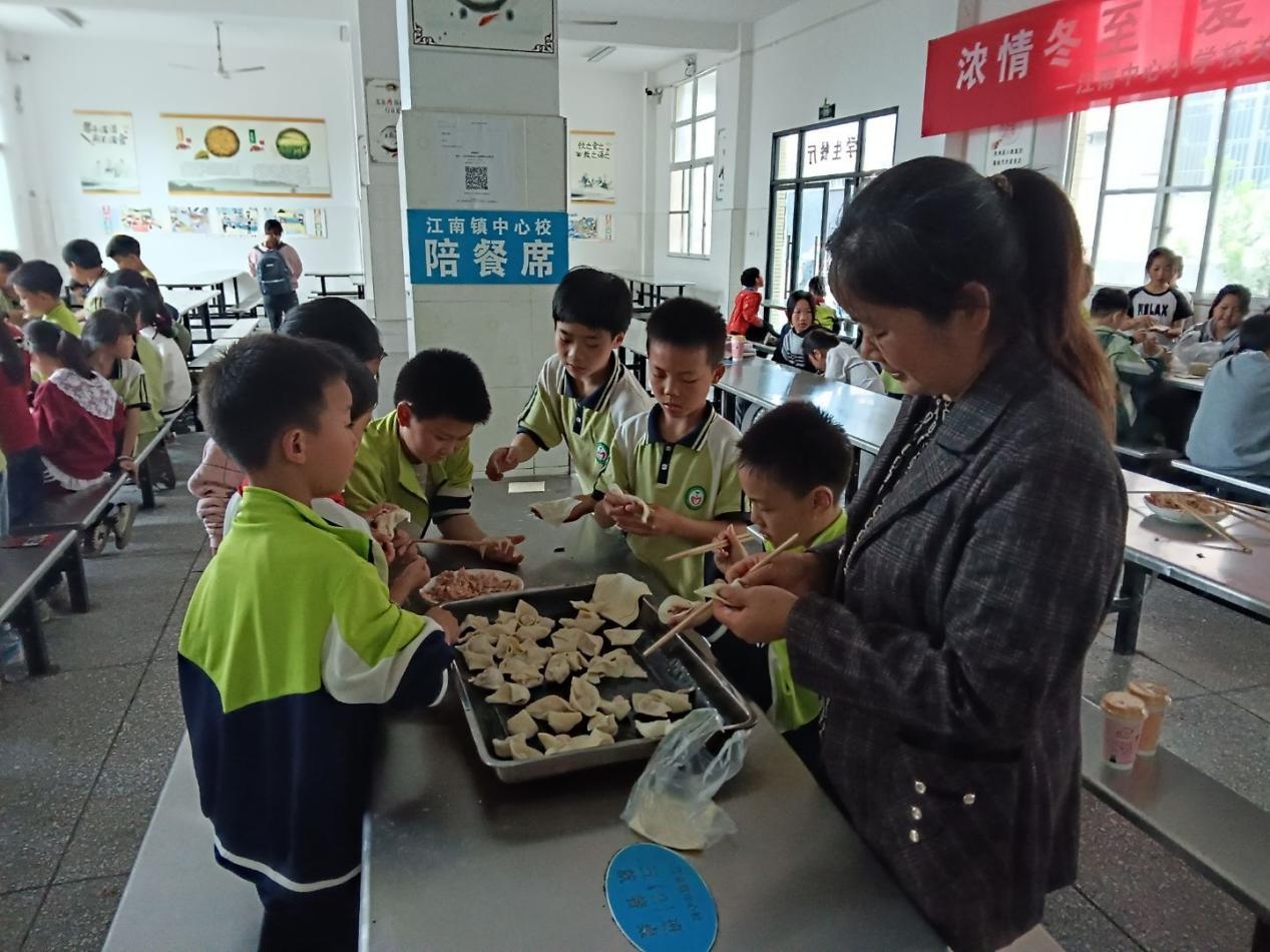 上午十点半,师生返回校园,一场包抄手劳动实践活动随即展开。在老师和家长指导下,孩子们撸起袖子,有模有样地学起来——有的包得像元宝,有的像小船,还有的“露了馅”,惹得大家哈哈大笑。品尝自己的劳动成果时,孩子们直呼“比什么都香”。