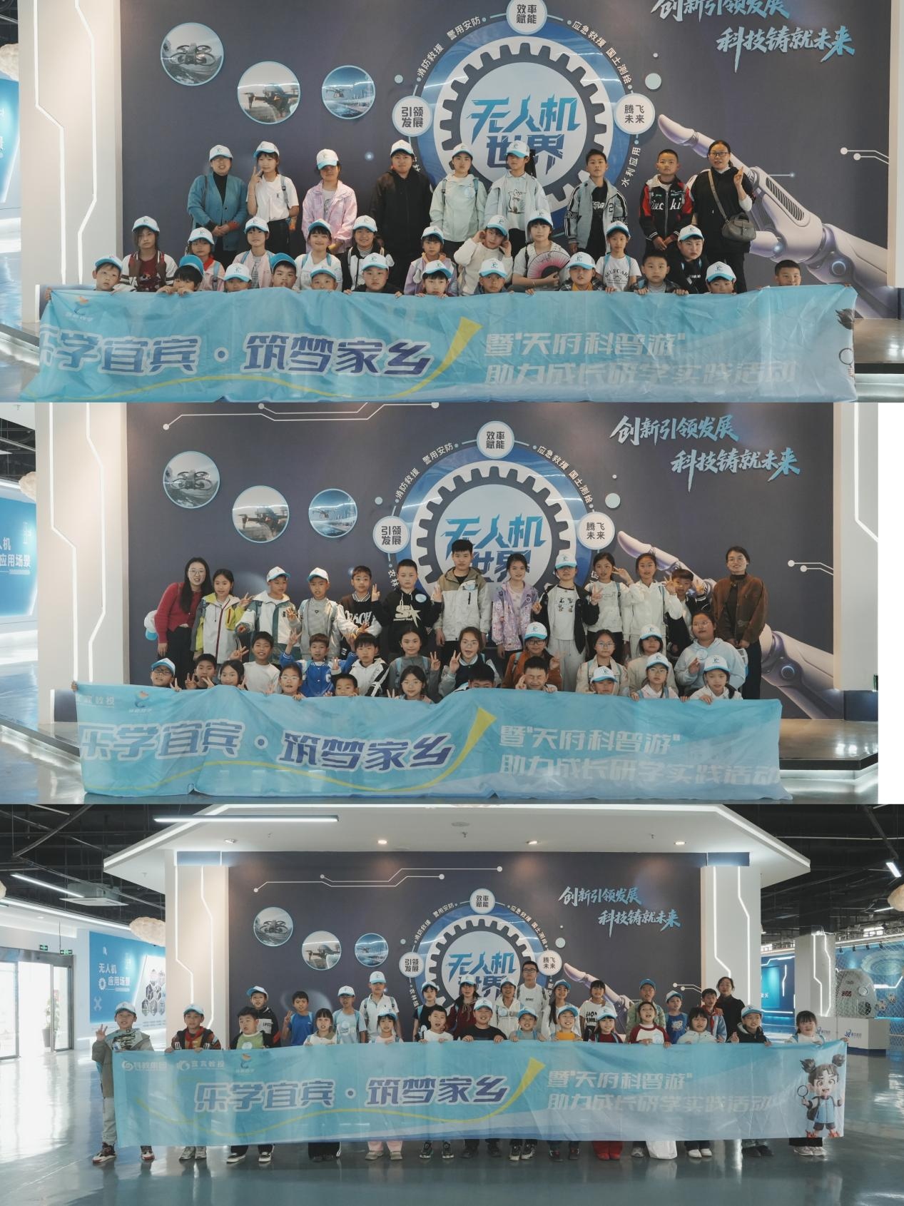当天上午,师生们首先抵达翼空智控基地。在基地一楼,大家通过参观讲解,了解了无人机的基础知识与前沿应用,并在户外参与了飞行知识科普和精彩的飞行表演。活动尾声,全体师生还以无人机航拍方式合影留念,留下难忘瞬间。