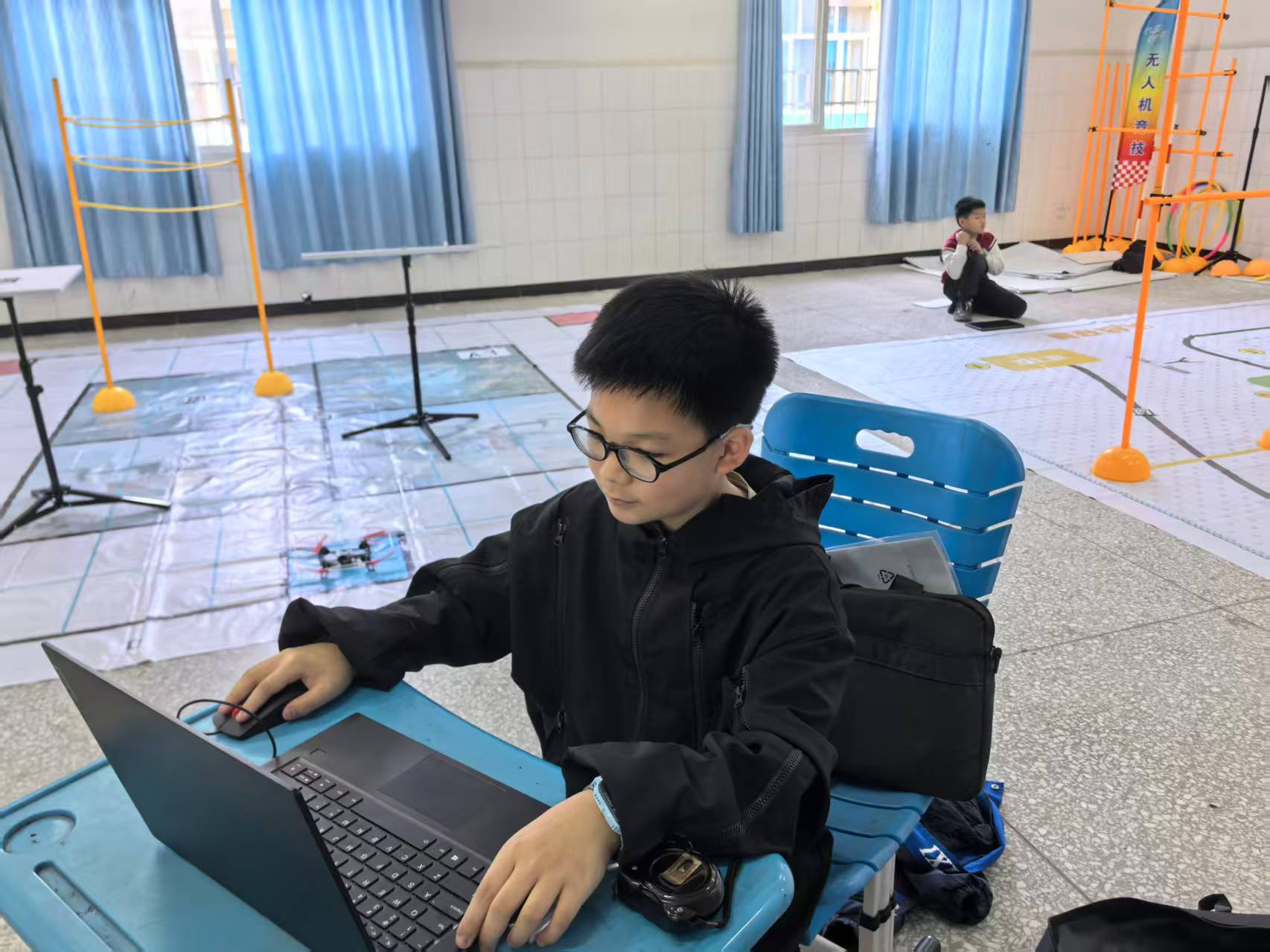 在“竞速三江(机甲竞速)”赛场,同学们围绕主题赛道精心调试自己的机甲小车。从搭建组装到改良调试,从操控练习到战术规划,大家全神贯注,一次次修正路线、优化操控,努力让小车在赛道上平稳运行、高效完成任务,展现了扎实的实践能力与细致的探究态度。