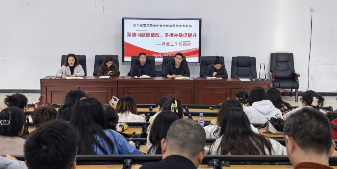 4月8日,宣汉职专旅游服务专业部召开月度工作检视会,学校纪委书记李建军及专业部全体教师参加会议。会议以“聚焦问题抓整改、多措并举促提升”为主线,通过集中学习、数据分析、责任部署与整改规划,系统梳理近期工作,明确下一阶段提升路径,展现了专业部自我革新、务实笃行的作风。