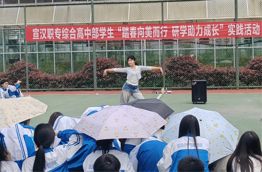 此次活动不仅是一场劳动技能的大练兵,更是一次深度的心理疗愈与艺术浸润。午后暖阳下,一场田野间的文艺汇演将气氛推向高潮。师生同台,主持人大方得体,妙语连珠。独唱婉转如溪流,合唱激昂若松涛,舞蹈翩跹似蝶舞,小品幽默而富有专业底蕴。艺术特长在这一刻挣脱了教室围墙的束缚,与风声、鸟鸣交织成最美的青春交响。