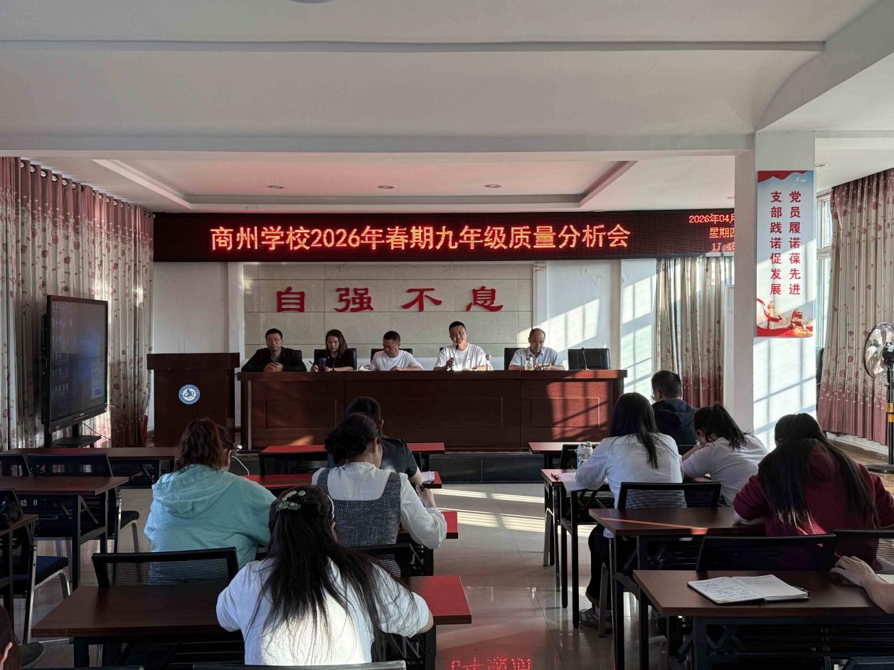 4月9日下午,商州学校召开2026年春季学期初三质量分析会,全体行政人员及初三全体教师参会,会议由副校长曾风琴主持。此次会议旨在全面总结前期教学成果,精准分析当前学情,凝聚共识、明确方向,为即将到来的中考吹响冲刺号角。