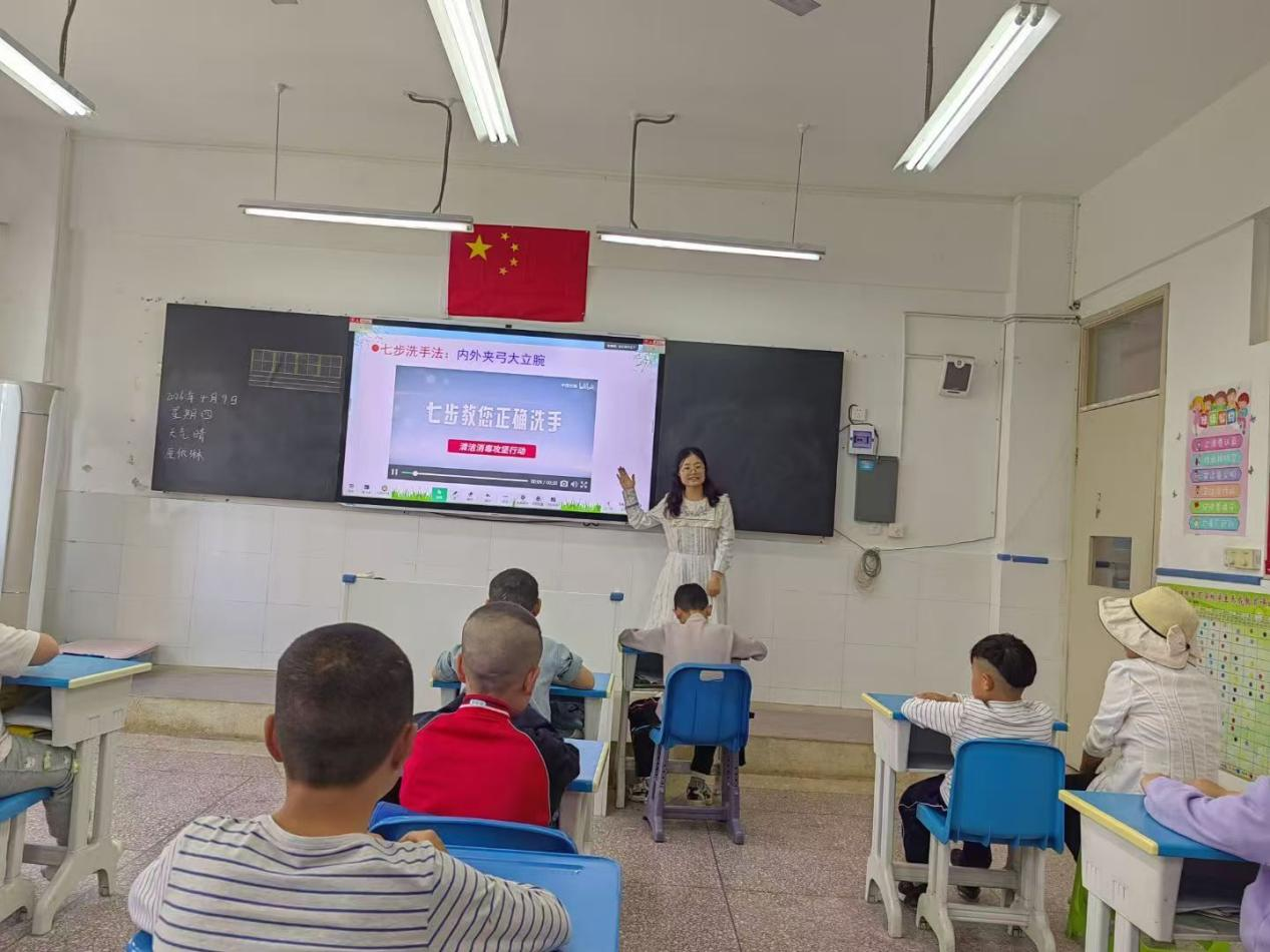 为全方位传递爱国卫生知识,营造“人人参与、人人有责”的浓厚氛围,学校充分利用校园宣传阵地,开展多样化宣传活动:各班级结合学生特点,精心绘制爱国卫生主题黑板报,以色彩鲜明的图画、简洁易懂的文字,呈现个人卫生、垃圾分类、传染病预防等知识,让孩子们在课间观赏中潜移默化学习卫生知识;校园LED显示屏循环滚动爱国卫生月主题标语、卫生小常识,语言简洁直白、朗朗上口,适配特殊学生的认知特点,让爱卫理念渗透校园每一个角落。