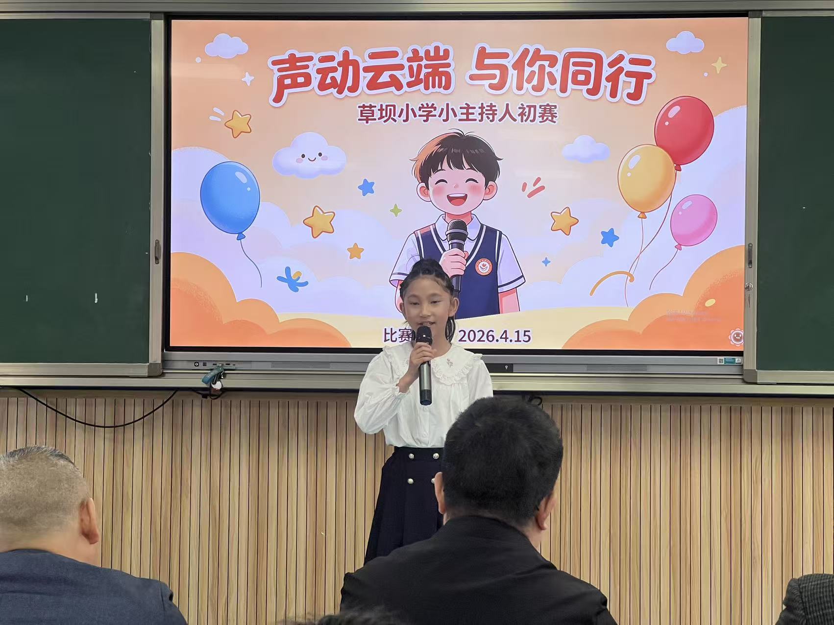 为丰富校园文化生活,提升学生语言表达能力,近日,草坝小学“声动云端,与你同行”小主持人初赛活动火热举行。全校27名同学齐聚赛场,共同奔赴一场声音的盛宴,角逐复赛名额。