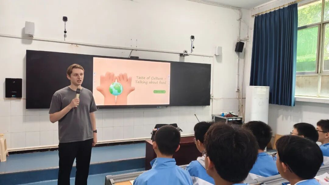 为贴合初中生英语学习水平,Tycho老师精心设计互动问题,如“What's your favorite traditional food in your hometown?(你家乡最爱的传统美食是什么?)”“Can you introduce one kind of traditional food in English?(用英语介绍一种传统美食?)”,引导学生主动思考、大胆开口表达。同时,他巧妙将情态动词语法知识与美食话题深度融合,通过情景对话、例句示范等形式,将抽象枯燥的语法规则具象化、趣味化,帮助学生在真实语境中理解语法内涵,提升语言运用能力。讲座过程中,学生们踊跃参与互动,主动提问交流,在轻松愉快的氛围中锻炼了口语表达,深化了对跨文化交流的理解,树立了多元包容的文化理念。