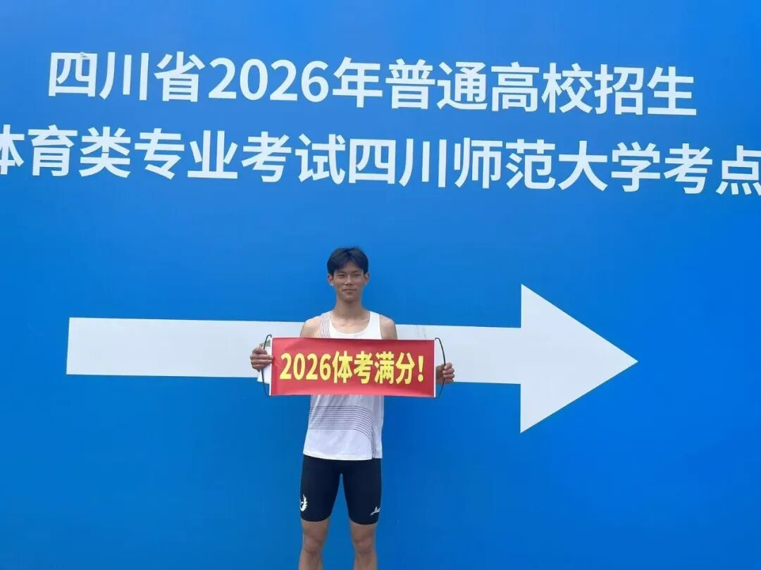 近日,南溪二中学子王熠、王知润、李映洁三位同学在2026年普通高校招生体育类专业统一考试中一举夺得满分(100分)佳绩。