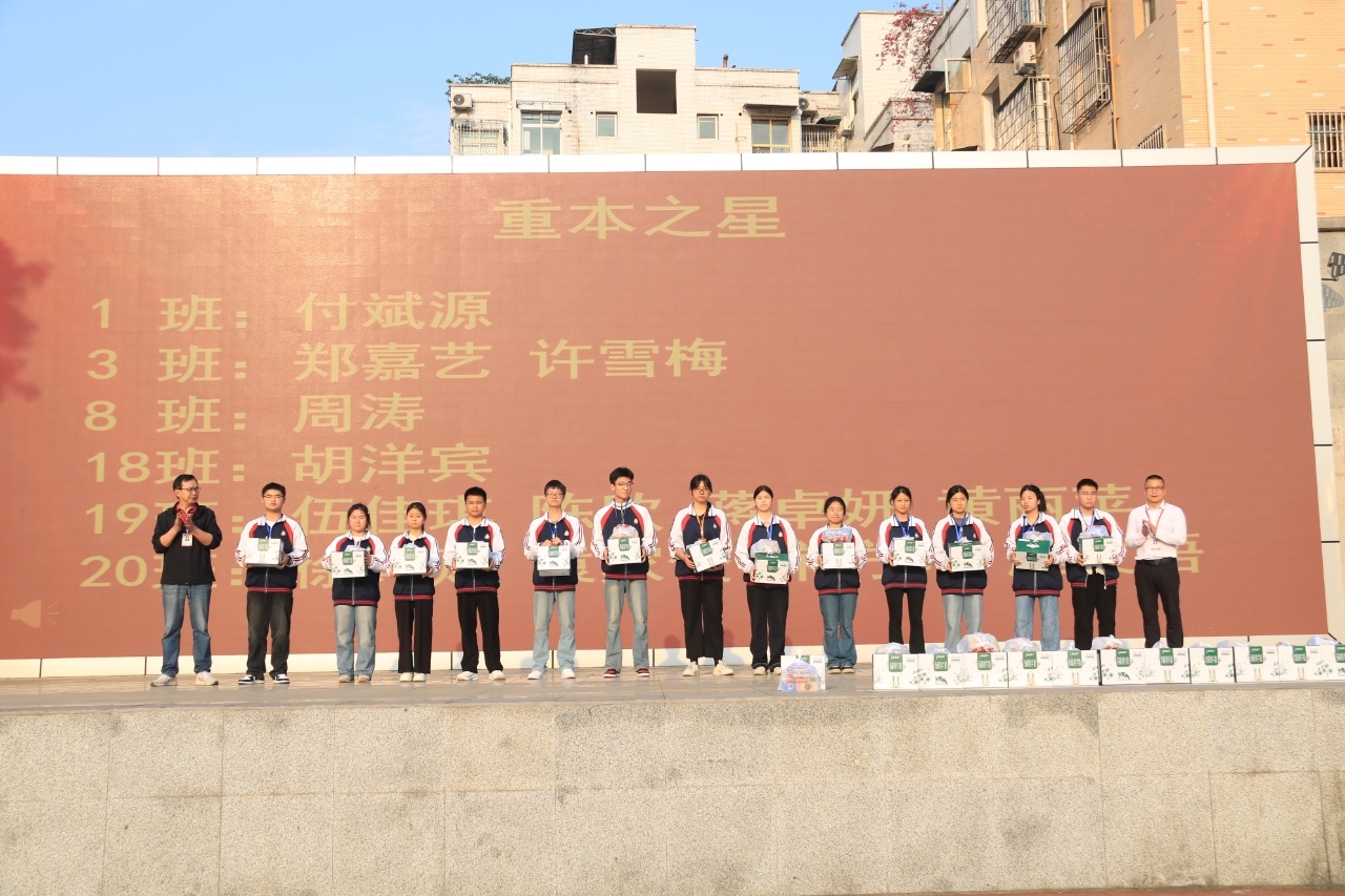 大会依次表彰艺体之星、本科之星、重本之星,数百名学子登台受奖,少年意气,风华正茂;在班级对抗中十一个优胜班级获奖,群雄逐鹿,斗志昂扬;十八名优秀教师荣耀加冕,匠心育人,薪火相传。教师代表雷锐老师真情寄语,字字恳切;全体学子高举右拳、庄严宣誓,誓言铿锵、响彻云霄,尽显决战高考的坚定信念。