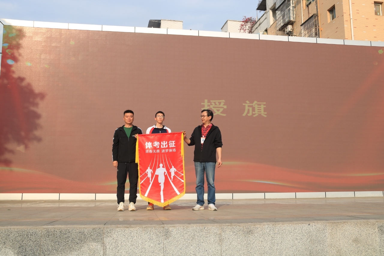紧随其后,热血沸腾的体考壮行仪式正式拉开帷幕。陈志刚书记亲手为体育健儿授出征旗,旌旗猎猎,迎风招展,承载着全校师生的期盼与重托。全体体考生昂首挺立、庄严宣誓,誓言如铁、声震长空,以青春热血许下决胜体考的铮铮诺言。