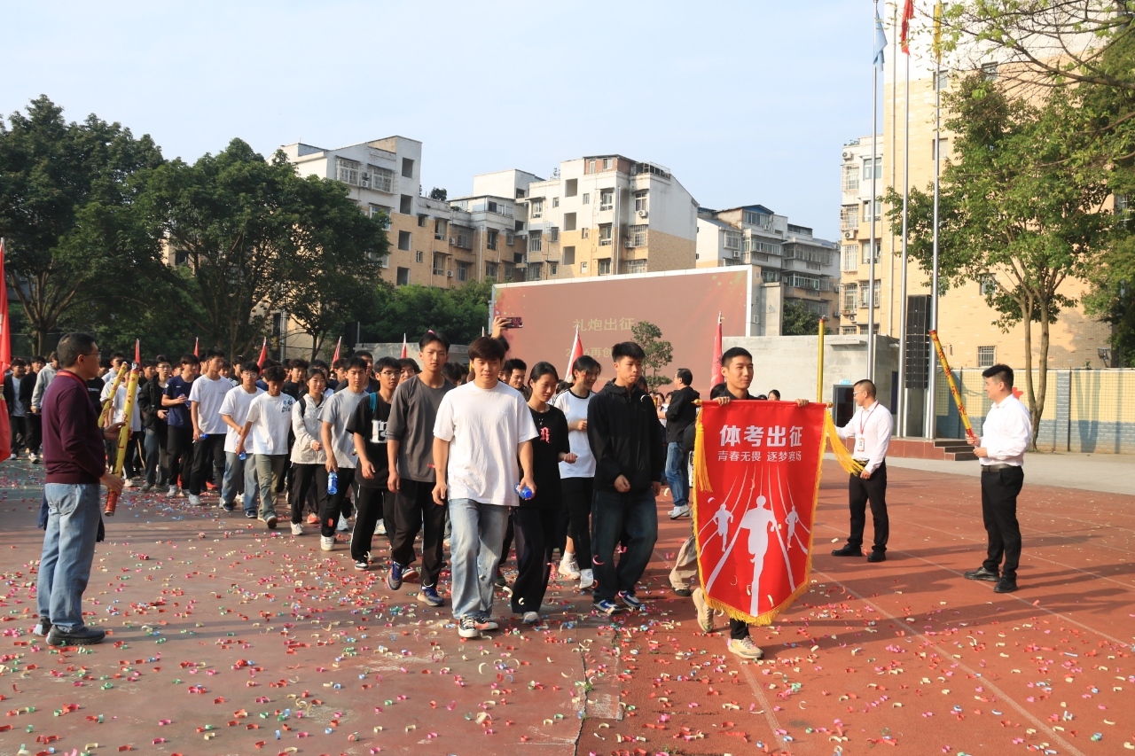 学校为勇士们颁发出征纪念品,字字祝福、件件暖心;二十六响礼炮轰然齐鸣,声震云霄,寓意 2026 再创辉煌!全场师生迅速列队,夹道欢送,班旗挥舞、呼声震天,“体考加油!二中加油!” 的呐喊响彻校园,为逐梦健儿壮行助威,将现场气氛推向最高潮。