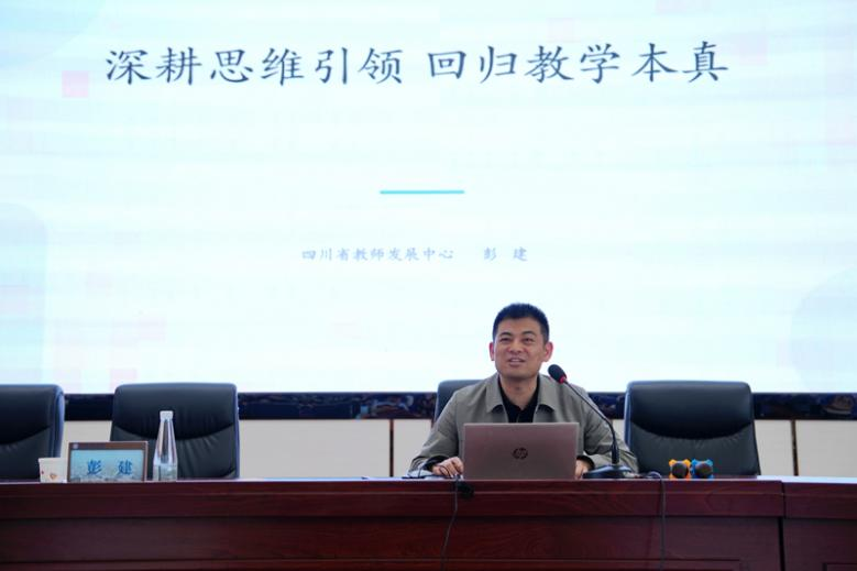 四川省教师发展中心正高级教师彭建以《深耕思维引领 回归教学本真》为题开展讲座。