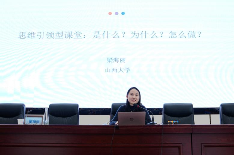 北京师范大学博士、山西大学讲师梁海丽以《思维引领型课堂:是什么?为什么?怎么做?》为题,围绕思维引领型课堂的理论与实践进行了系统阐述。