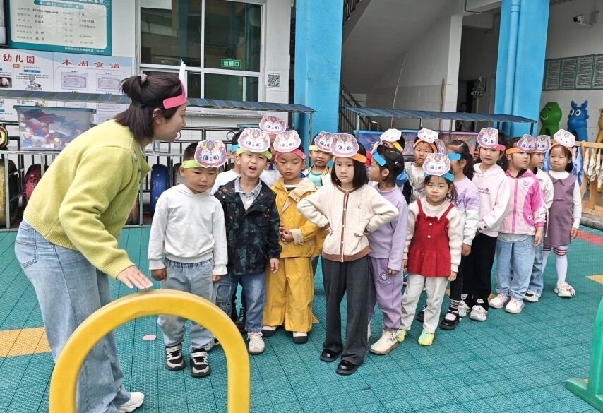 代敏老师带领中班幼儿开展 “龙宫寻宝” 趣味健康活动。活动中,她化身 “东海龙王”,以生动有趣的情境激发幼儿参与兴趣。孩子们通过匍匐前进钻洞穴、助跑跨跳越海浪等动作挑战完成寻宝任务,在游戏中有效锻炼了下肢力量、身体协调性与动作灵敏性。