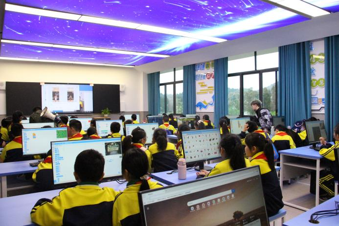 此外,AI科技体验与趣味拓展为研学增添活力。AI体验区里,同学们近距离接触智能技术,参与数字创作,直观感受科技魅力,激发科学探索与创新热情;趣味拓展中,“大带小”“熟帮生”的温暖场景随处可见,同学们在团队协作中锻炼沟通能力,收获友谊与成长。
