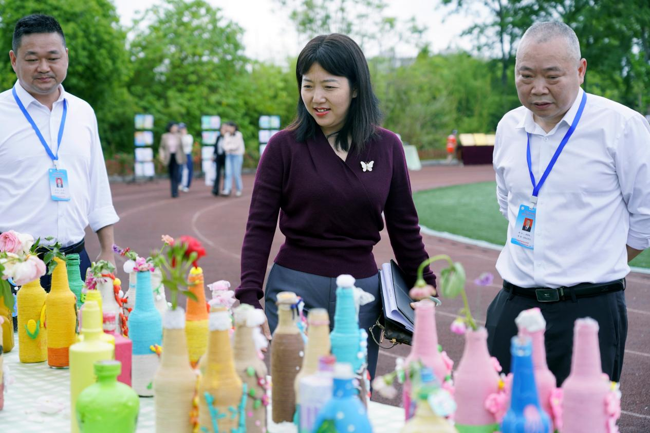 “原来废旧酒瓶可以变成这么美的摆件!”“把黄舣的本土文化和古诗四季结合起来,太有创意了!”嘉宾们纷纷举起手机拍照留念,对学生们的巧思和动手能力赞不绝口。