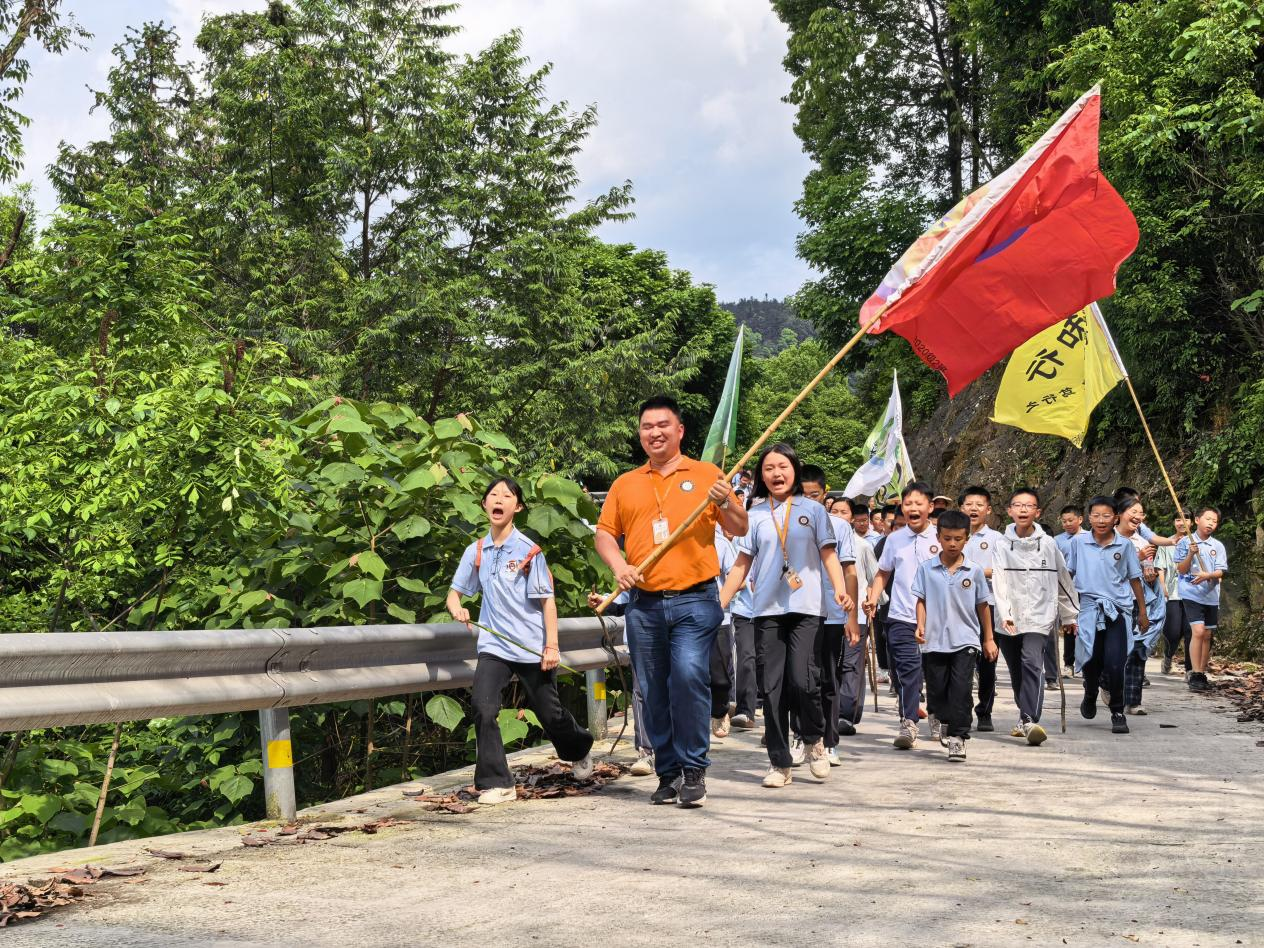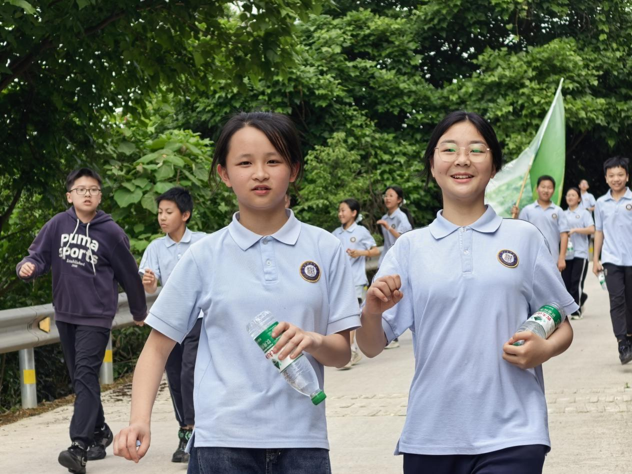 春日的丛林间,草木葱茏、生机盎然。20公里的路途并非一帆风顺,崎岖的地形、逐渐加剧的疲惫,都是对学子们体力与意志的双重考验。行进过程中,有的学子体力不支、气喘吁吁,却始终没有轻言放弃;有的学子主动伸出援手,搀扶同伴、递上饮用水、喊出鼓劲口号,用行动诠释着团结友爱的真谛。带队教师全程陪伴,时刻关注学子们的状态,适时引导、耐心鼓励,与学子们并肩前行,成为大家最坚实的后盾。一路上,欢声笑语与坚定步伐交织,飘扬的旗帜与青春的身影相映,构成了春日里最动人的风景。