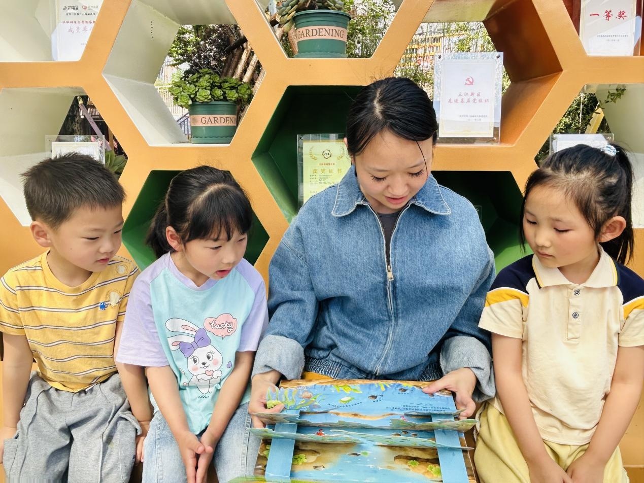 师幼共读,传递温暖陪伴:党员教师与普通教师化身 “阅读引路人”,走进班级、走进阅读角,与幼儿围坐共读绘本故事。用生动的语言、温暖的陪伴,带领幼儿走进童话世界、感知文字魅力,在共读中建立亲密的师幼关系,让阅读成为师幼情感交流的桥梁。