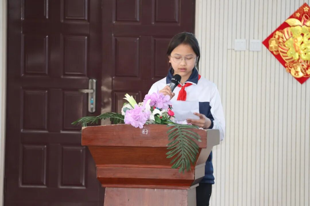 学校党总支部副书记廖书琴登台致辞,向区教育工会领导及劳模致以热烈欢迎与诚挚感谢,希望全体师生以劳模为灯塔,以榜样为明镜,让劳模精神扎根校园、浸润童心。学生代表满怀崇敬,为劳模献上鲜花,传递最真挚的敬意。
