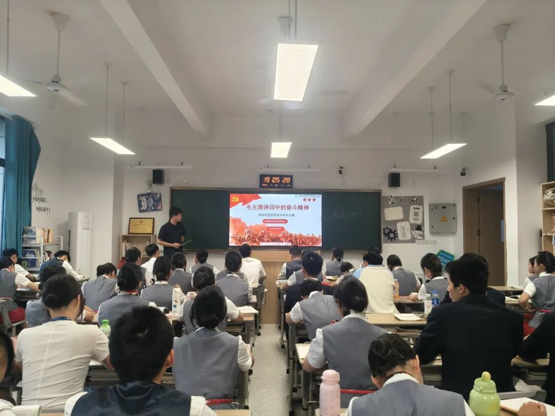 活动启动以来,各班级积极响应,将毛主席诗词的学习与诵读纳入日常学习管理。各班通过召开专题班会的形式,对毛主席诗词的创作历程、艺术特色及其蕴含的革命乐观主义、英雄主义和艰苦奋斗精神进行深入浅出地讲解。教室内、走廊间,课前课后,《沁园春·长沙》《七律·长征》《沁园春·雪》《忆秦娥·娄山关》等经典篇目不绝于耳。校园内形成了“读伟人诗词、悟奋斗真谛”的浓郁文化氛围。许多同学在心得中写道,要将从诗词中汲取的精神力量转化为刻苦学习、练就过硬技能的实际行动,走好技能成才、技能报国之路,争做新时代的奋斗者。
