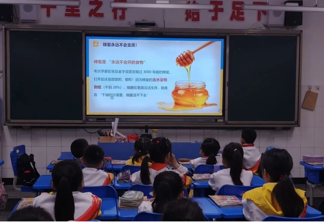 本次科普还融入实用生活技巧,教孩子们正确清洗草莓、催熟香蕉、储存蜂蜜、缓解辣味等方法,将科学知识与生活实践紧密结合,引导孩子养成科学、安全、健康的饮食行为。李老师以趣味化、生活化的食育科普,打破传统说教模式,让孩子在轻松氛围中认识食物、尊重食物、爱上食物。