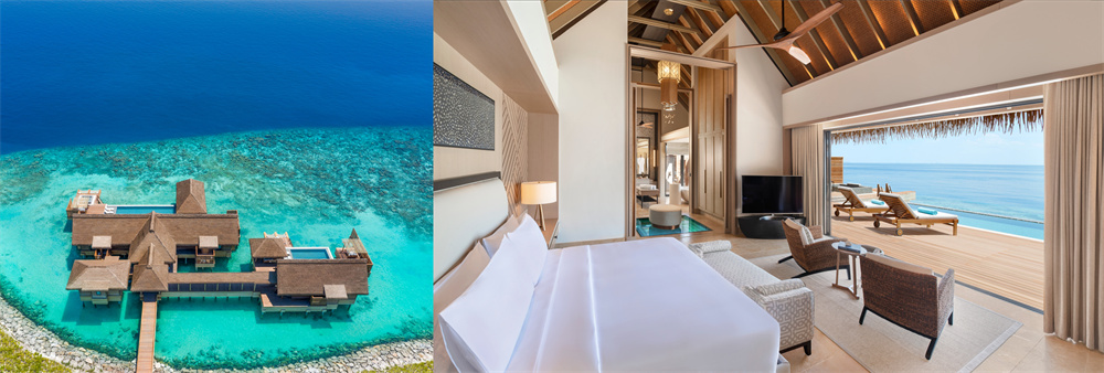 其双卧泳池别墅系列最小面积600平方米起,渴望与自然互动的家庭可以选择隐匿于棕榈椰林下,与沙滩亲密互动;双卧珊瑚礁泳池别墅则镶嵌于热带绿洲与晶莹剔透的渐变海域之间,让每一次休憩皆是一场奢华私享仪式;双卧水上泳池别墅则为探索印度洋创造了无与伦比的条件。