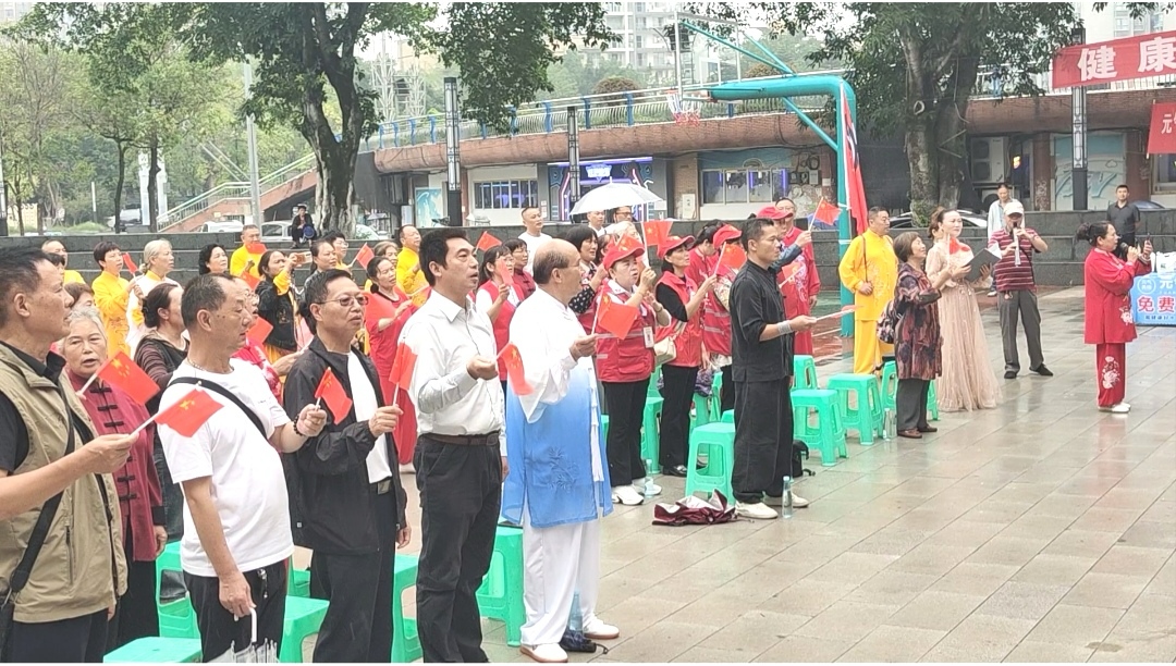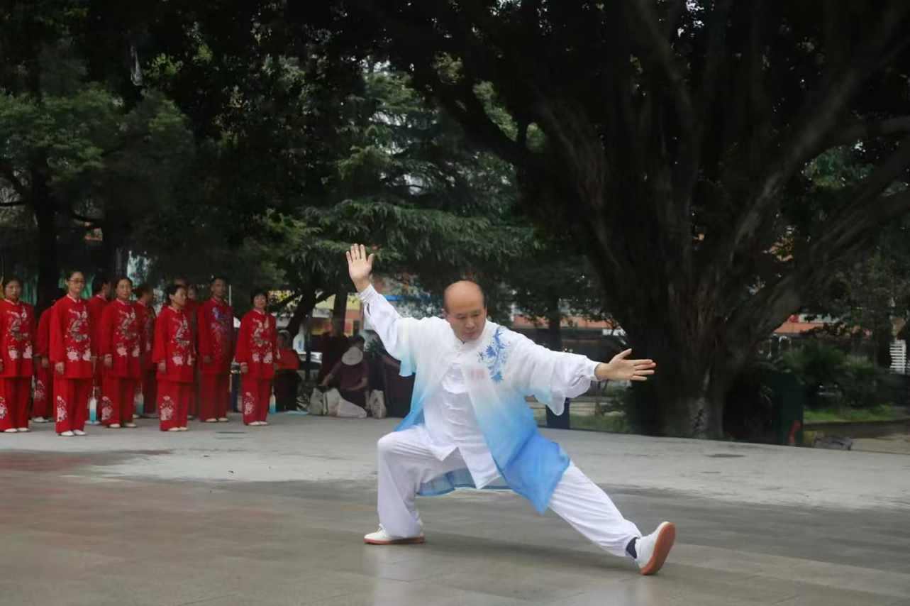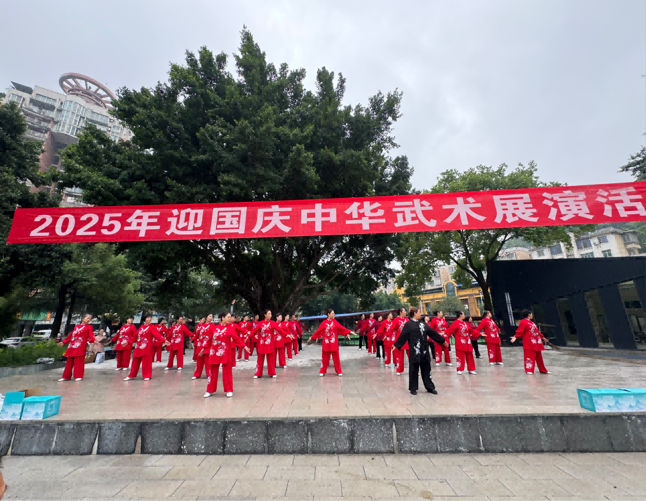 在举国欢庆中华人民共和国成立76周年之际,为积极响应全民健身国家战略,弘扬中华优秀传统文化,展现新时代人民群众昂扬奋进的精神面貌,近日,华蓥市老年体育协会、华蓥市武术协会、华蓥市太极协会在华蓥市华蓥山广场联合主办了主题为“健康迎国庆 武术颂华诞”的中英武术展演活动。