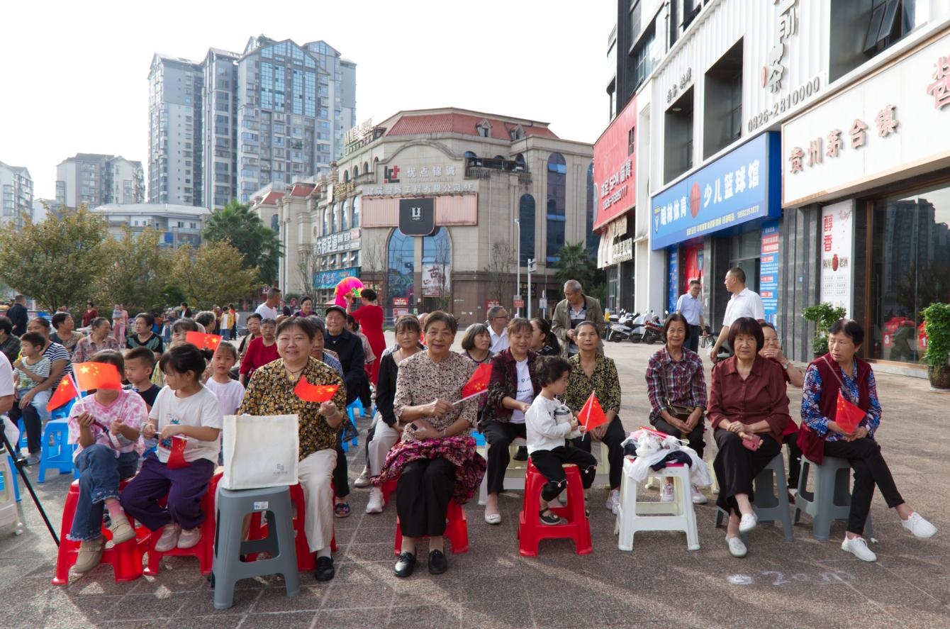 活动主要分为文艺表演、现场互动等环节,活动以西溪里小区居民带来的开场《盛世鼓舞》热闹启幕。花水湾小区居民带来的朗诵《爱我中华喜迎国庆》,大家们身着统一服装,神情庄重而饱满,醇厚朗诵声里满含对祖国的深情与热爱;主持人带来的《红旗飘飘》,激情昂扬,用嘹亮歌声唱出对祖国的热爱和对新时代美好生活的赞颂,赢得台下阵阵掌声。