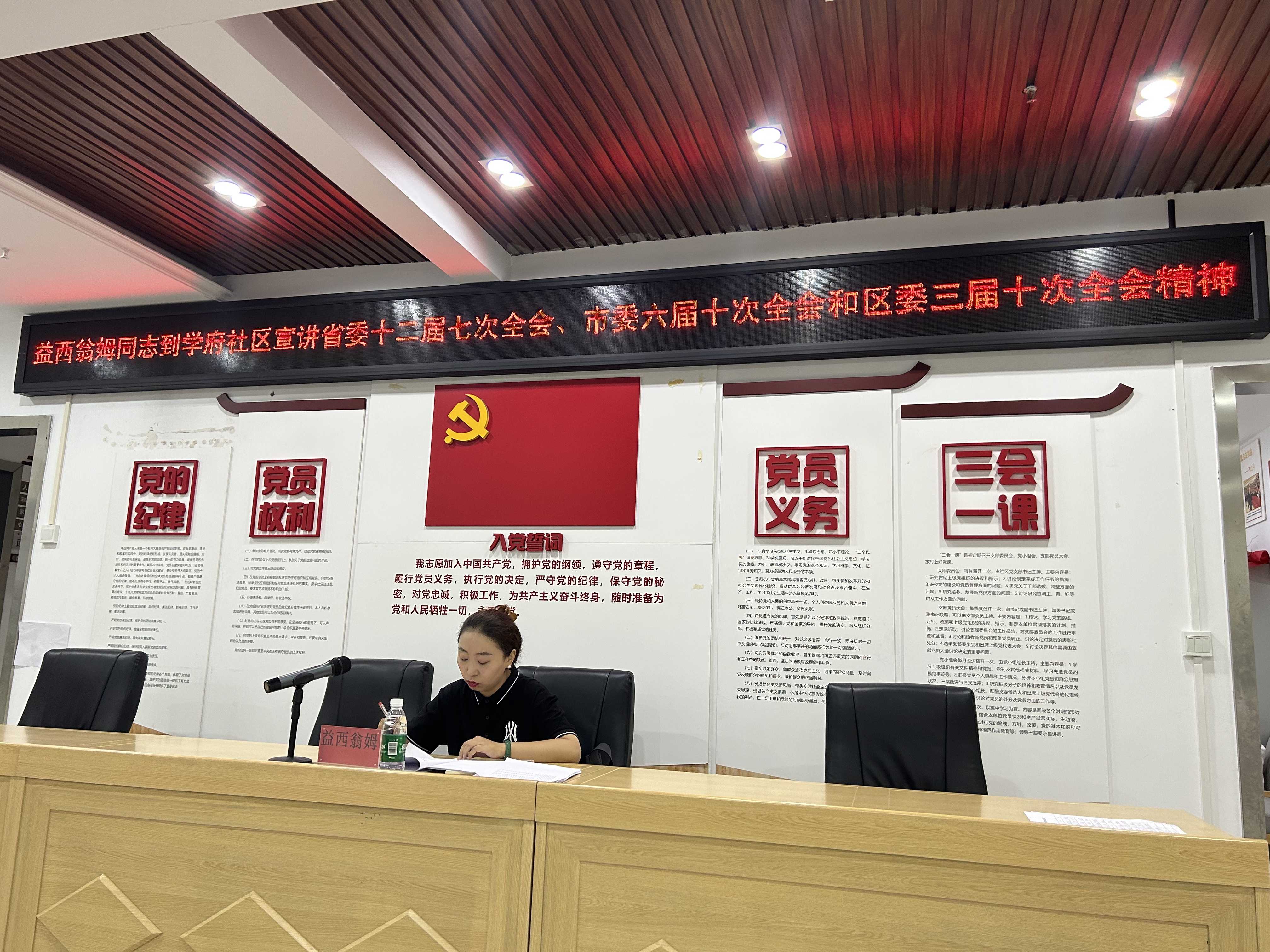 益西翁姆到学府社区宣讲省委十二届七次全会、市委六届十次全会和区委三届十次全会精神