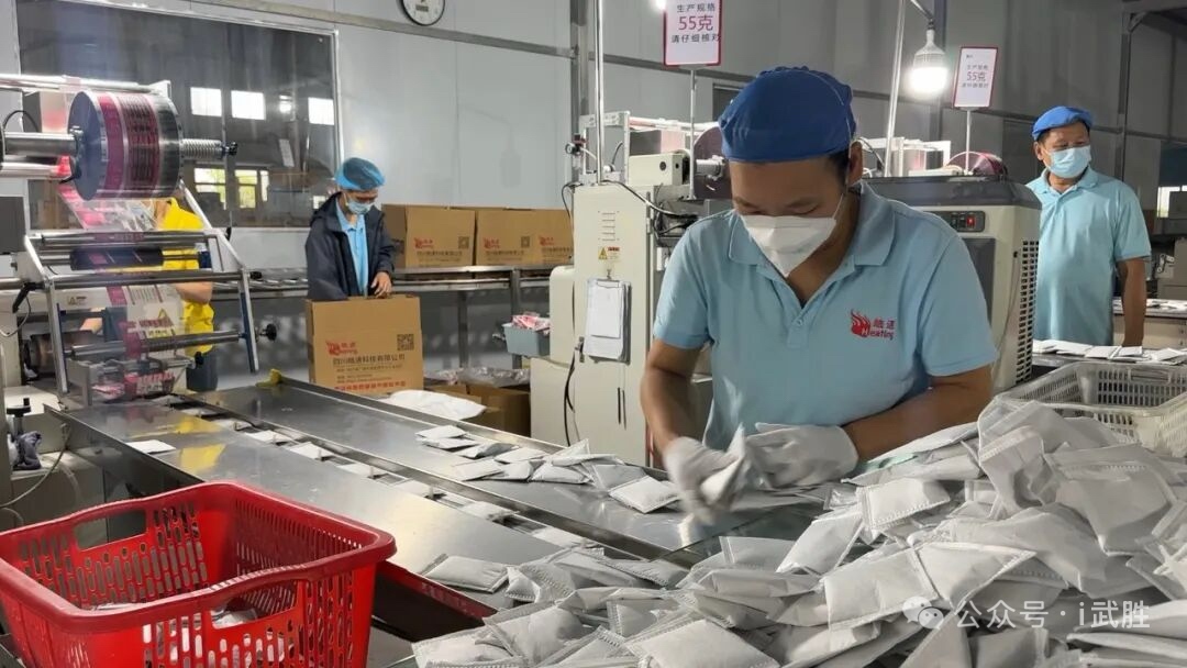 走进四川皓速科技有限公司生产车间,机器高速运转,工人在岗位上有条不紊忙碌,一派热火朝天的生产景象。这家2019年落户武胜经开区的企业,最初仅生产自加热包,产品单一。