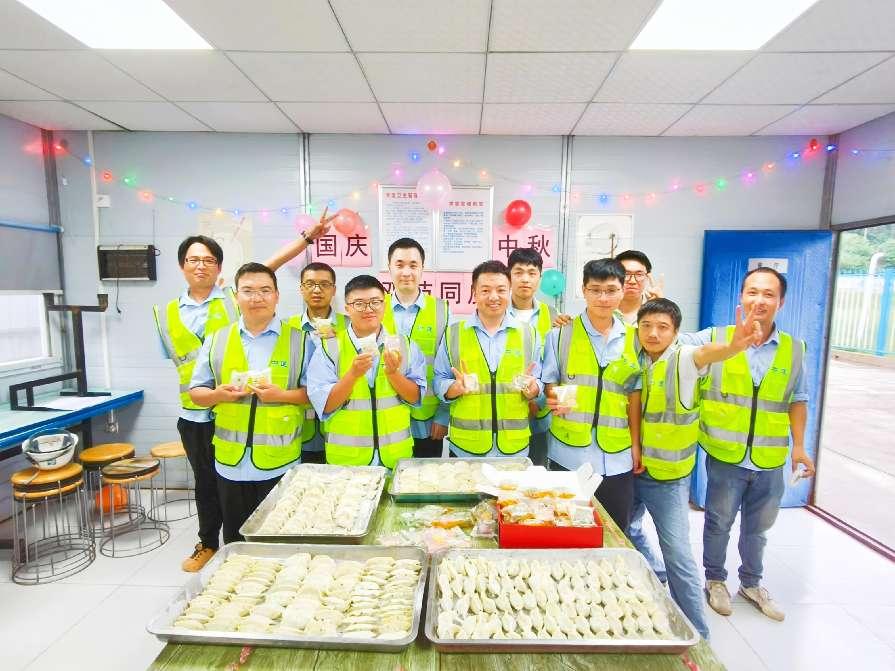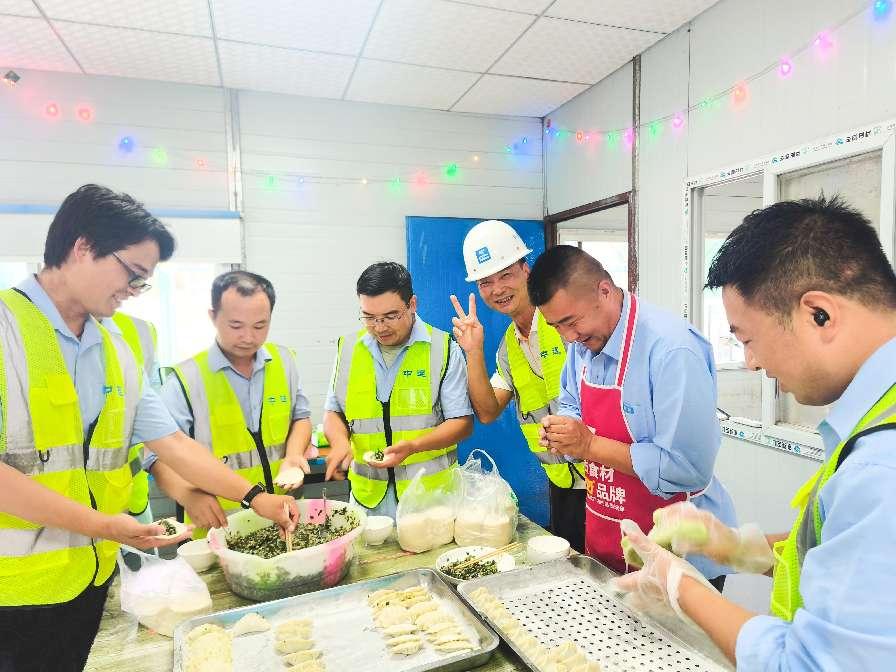 晚餐时分,一盘盘热腾腾的饺子和手工制作的月饼陆续上桌。猪肉白菜馅饺子、五仁月饼、莲蓉月饼等各地风味,既勾起了工友们的乡愁,也温暖了来自天南地北的建设者的胃与心。一位河南工友感慨道:“虽然不能回家,但在这里,我们感受到了家一样的温暖。项目部把我们当家人,心里特别踏实。”