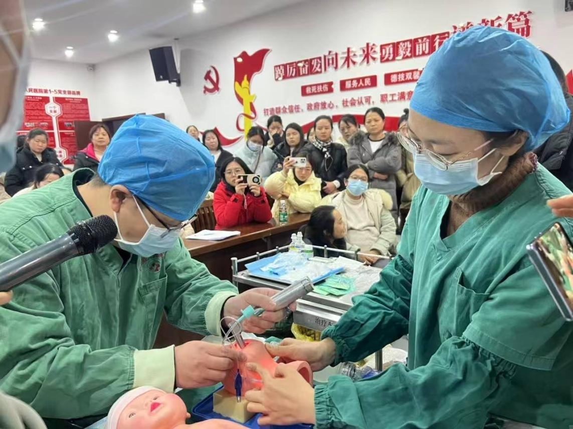 自品牌创建以来,县人民医院第五党支部始终把党建与民生需求绑在一起。定期走进社区、乡镇开展“孕期保健课堂”,手把手教准爸妈护理知识;针对早产儿、体弱儿建立“随访档案”,医生定期上门复查;在儿科门诊开设“儿童保健专区”,从生长发育评估到儿童常见病预防咨询、健康档案建立与随访,提供“一站式”服务。遇到危重病例,“党员带头+多学科联动”的机制立刻启动,从麻醉镇痛到重症监测,从产后护理到新生儿康复,每一个环节都有党员医护守岗尽责。