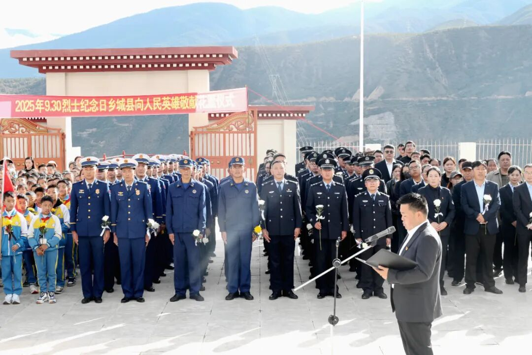 丰碑矗立昭日月,英烈精神励后人。9月30日上午,我国第十二个烈士纪念日如期而至。四川省甘孜州乡城县烈士陵园内,苍松翠柏颔首静立,革命烈士纪念塔在晨光中巍然矗立,空气中弥漫着庄严肃穆的氛围。乡城县公安局精心挑选20名民辅警代表,身着笔挺整齐的警服,怀着对革命先烈的无比崇敬之情,全程参与县委、县政府举办的烈士纪念活动,在缅怀英烈丰功伟绩中传承红色基因,在庄重仪式感里筑牢忠诚警魂。