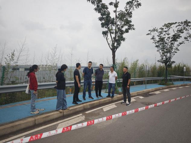 “这里沉降约3厘米,周边人流量车流量大,必须立即采取临时防护措施。”英发睿能企业外的道路上,市政、应急等部门工作人员正围着人行道沉降区域展开勘测。卷尺测量、拍照记录、现场会商,各项工作有序进行。随后,施工人员迅速设置警示围栏和“注意沉降 减速慢行”的警示牌,对过往车辆进行引导提示。